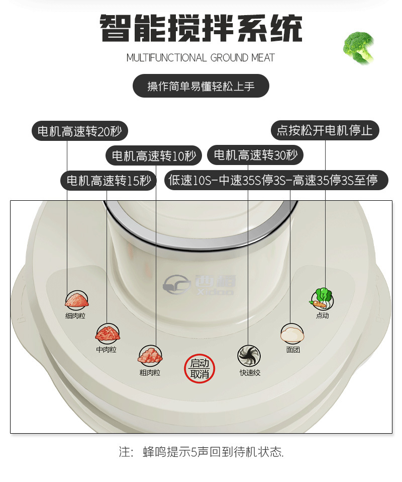 다목적 고기 분쇄기 Xidao 5L 대용량 가정용 주방 완전 자동 식품 보충제 및 식품 가공 통합 고기 분쇄기