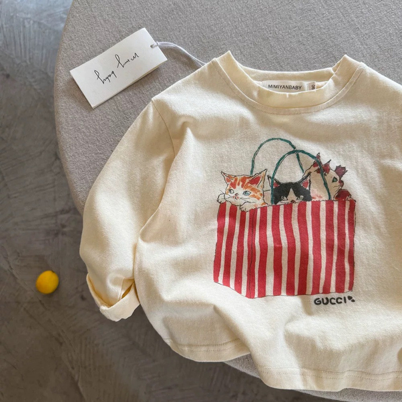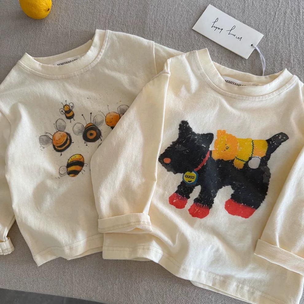 어린이 만화 티셔츠 봄과 가을 새로운 스타일 소년 탑 아기 긴팔 유행 t 스타일 소녀 바닥 셔츠 소녀 순수 코튼스토어 가기