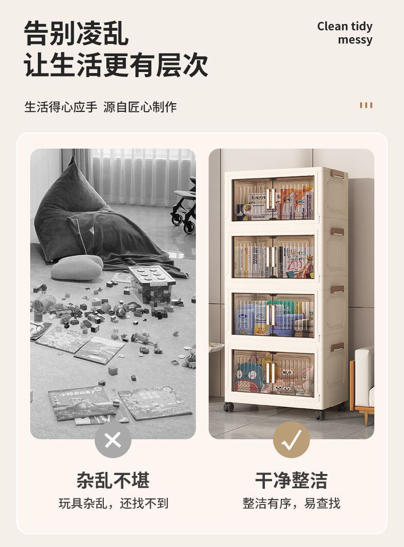 두꺼운 보관 상자 접이식 보관 캐비닛 거실 스낵 장난감 다층 보관 랙 침실 아기 옷장 보관 캐비닛
