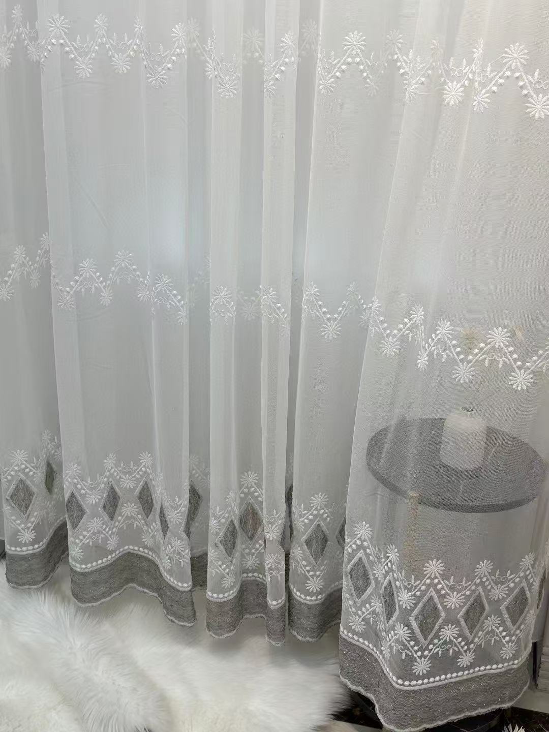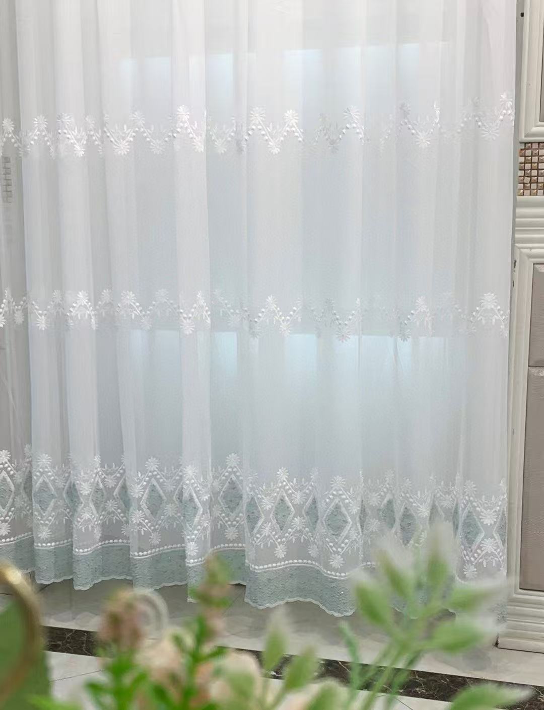 Su 자수 창 스크린 밝은 실크 평면 흰색 거실 침실 다목적 유럽 스타일 Amazon AliExpress 완제품 처리