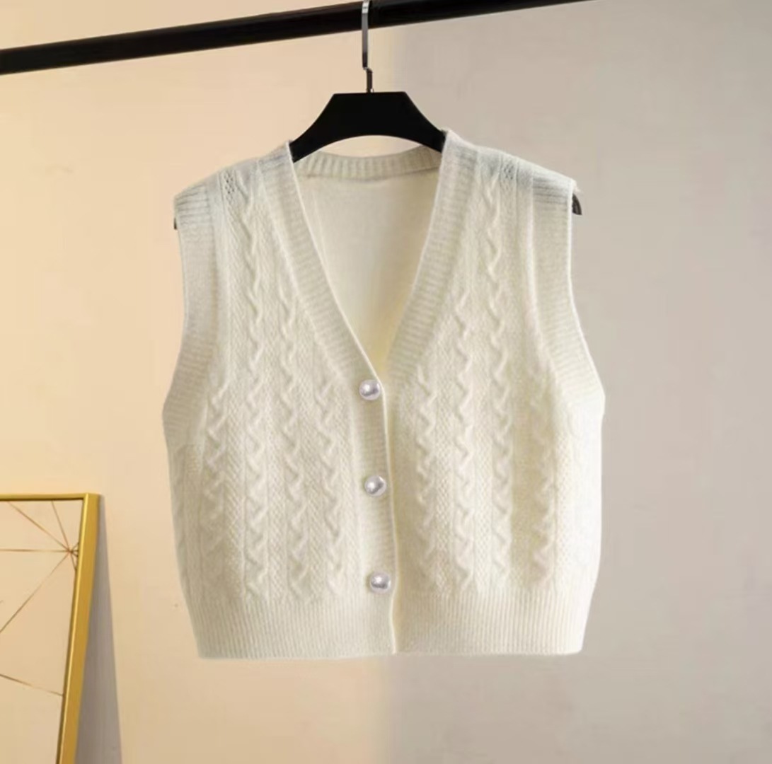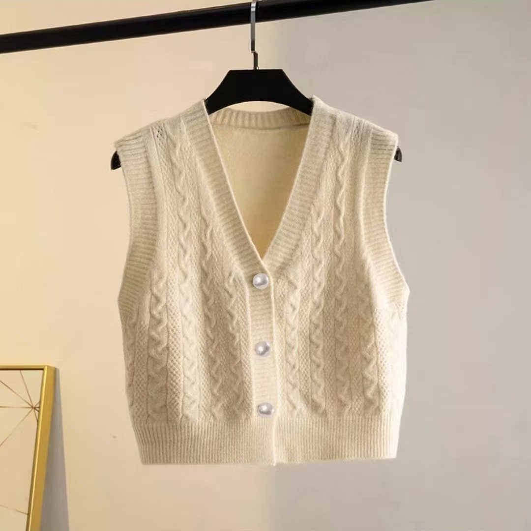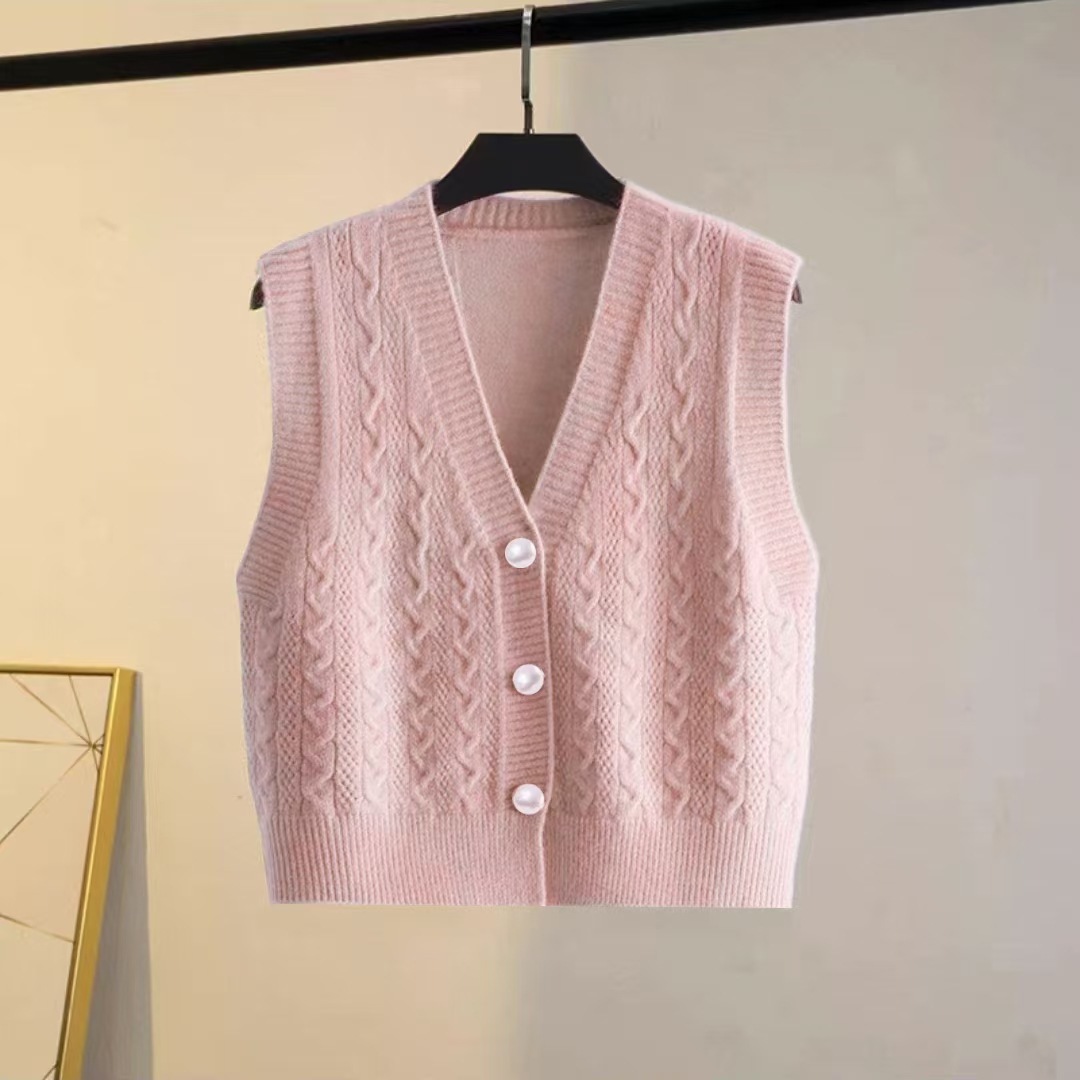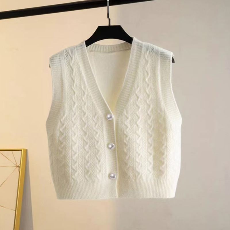 봄 신작 니트 솔리드 컬러 조끼 카디건 여성용 아우터 v 넥 민소매 루즈 대형 다용도 스웨터스토어 가기