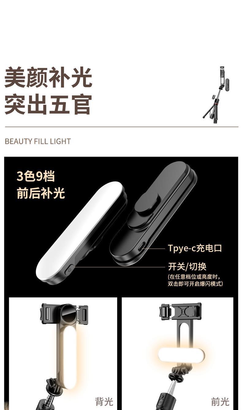 L15 분리형 필 라이트 램프 블루투스 원격 제어 텔레스코픽 셀카 스틱 확장 강화 삼각대 셀카 스틱