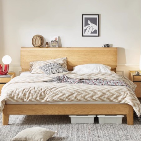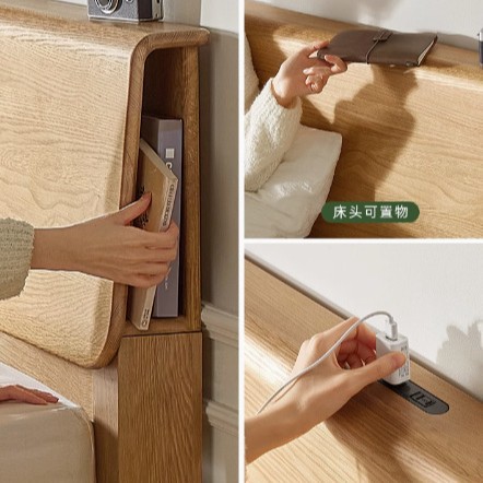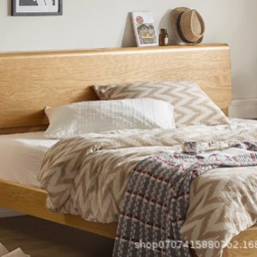 원목 침대 북유럽 전체 원목 침대 심플 스타일 더블 침대 침실 홈 라이트 럭셔리 전체 오크 침대 리클라이닝 침대