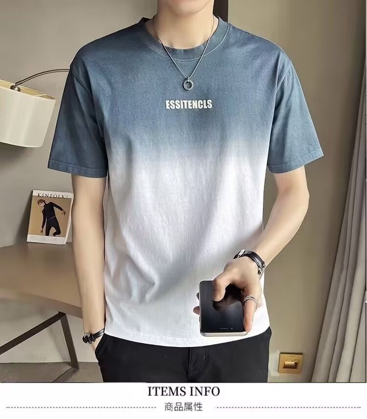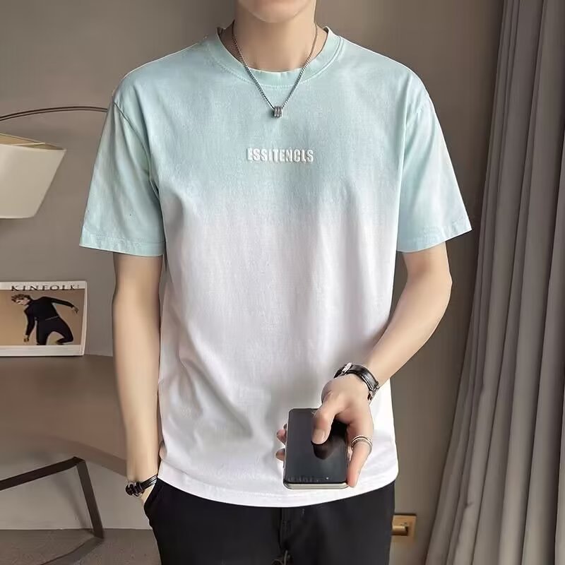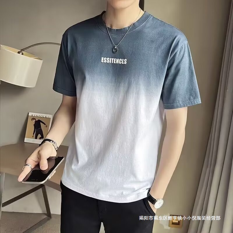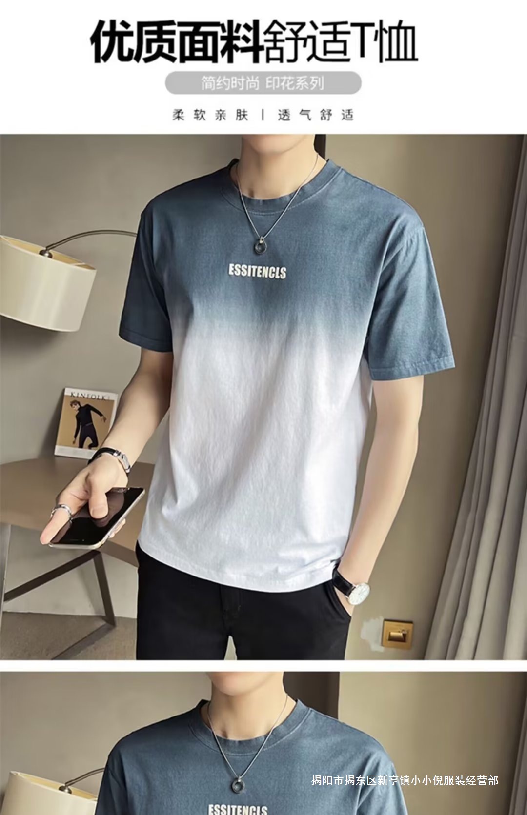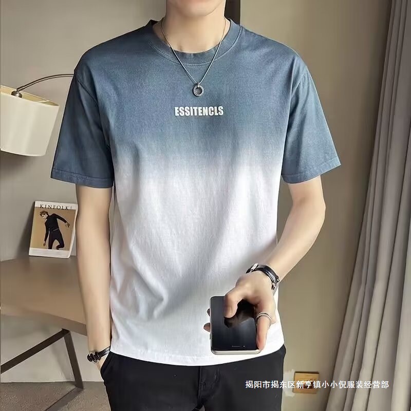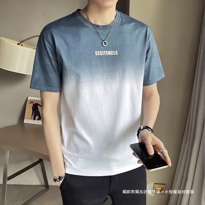 남성용 캐주얼 반팔 티셔츠 2024 새로운 여름 유행 브랜드 그라디언트 컬러 반팔 남성용 얼음 실크 시원한 통기성 셔츠스토어 가기