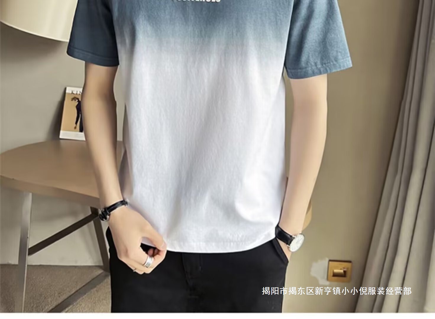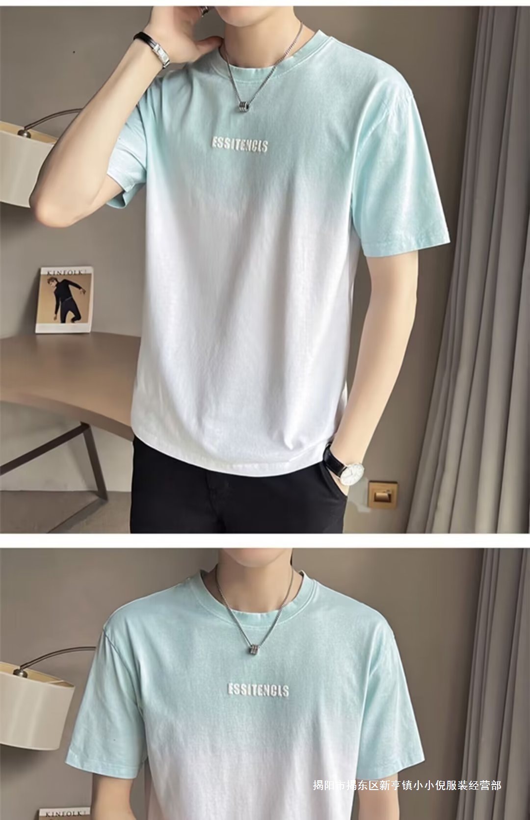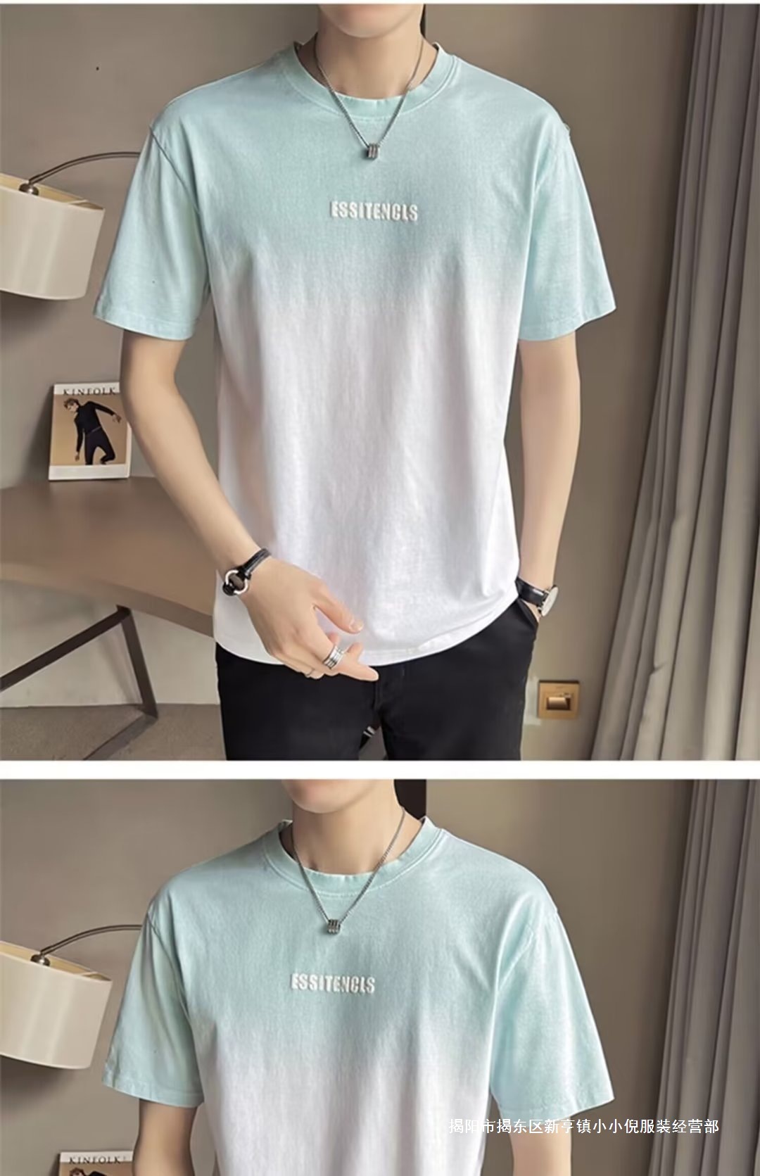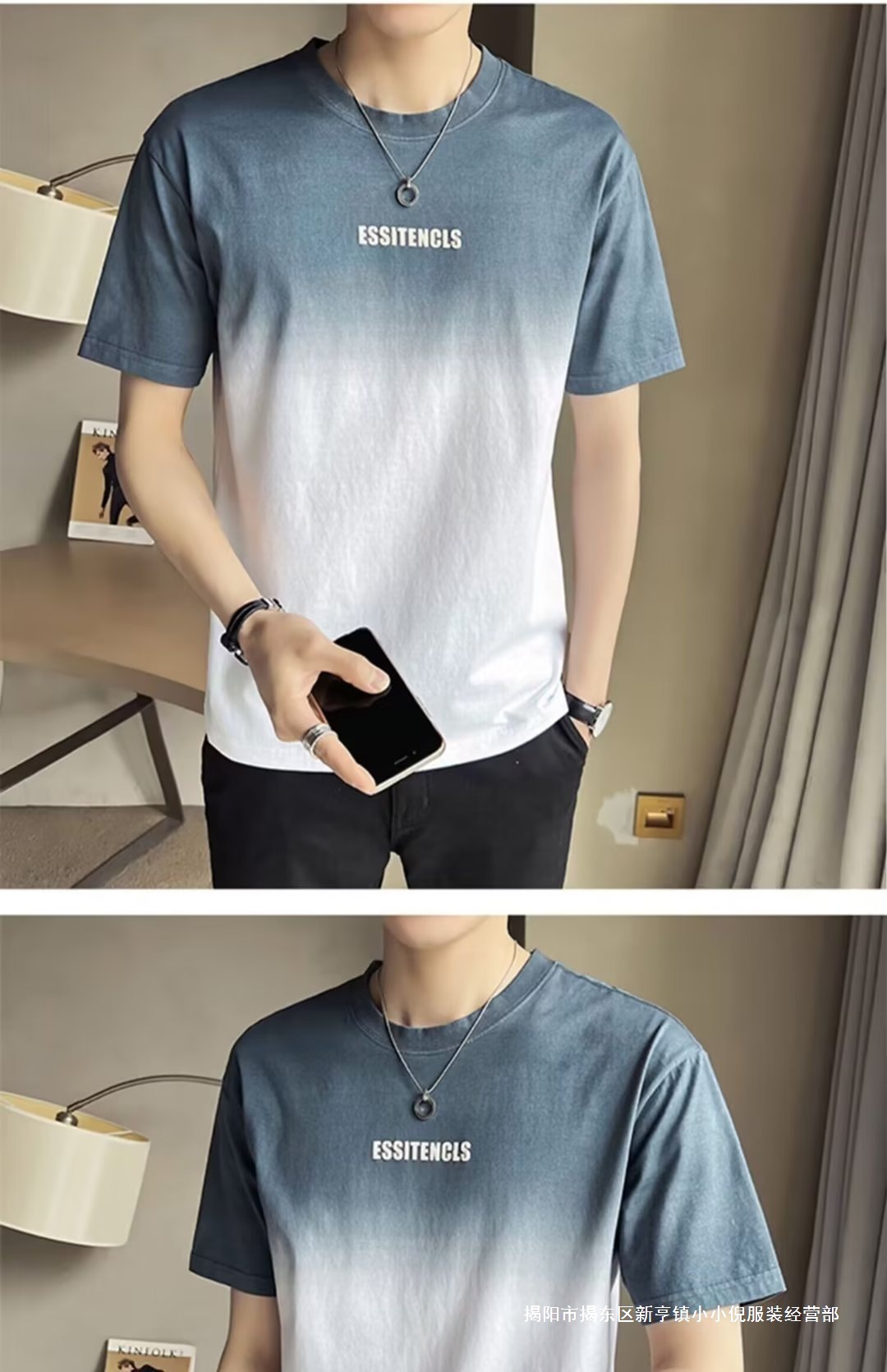 남성용 캐주얼 반팔 티셔츠 2024 새로운 여름 유행 브랜드 그라디언트 컬러 반팔 남성용 얼음 실크 시원한 통기성 셔츠스토어 가기