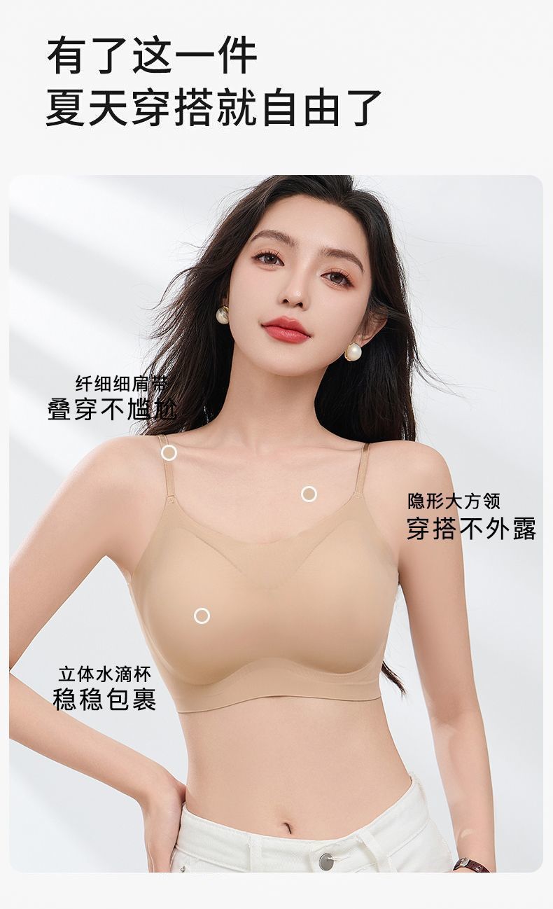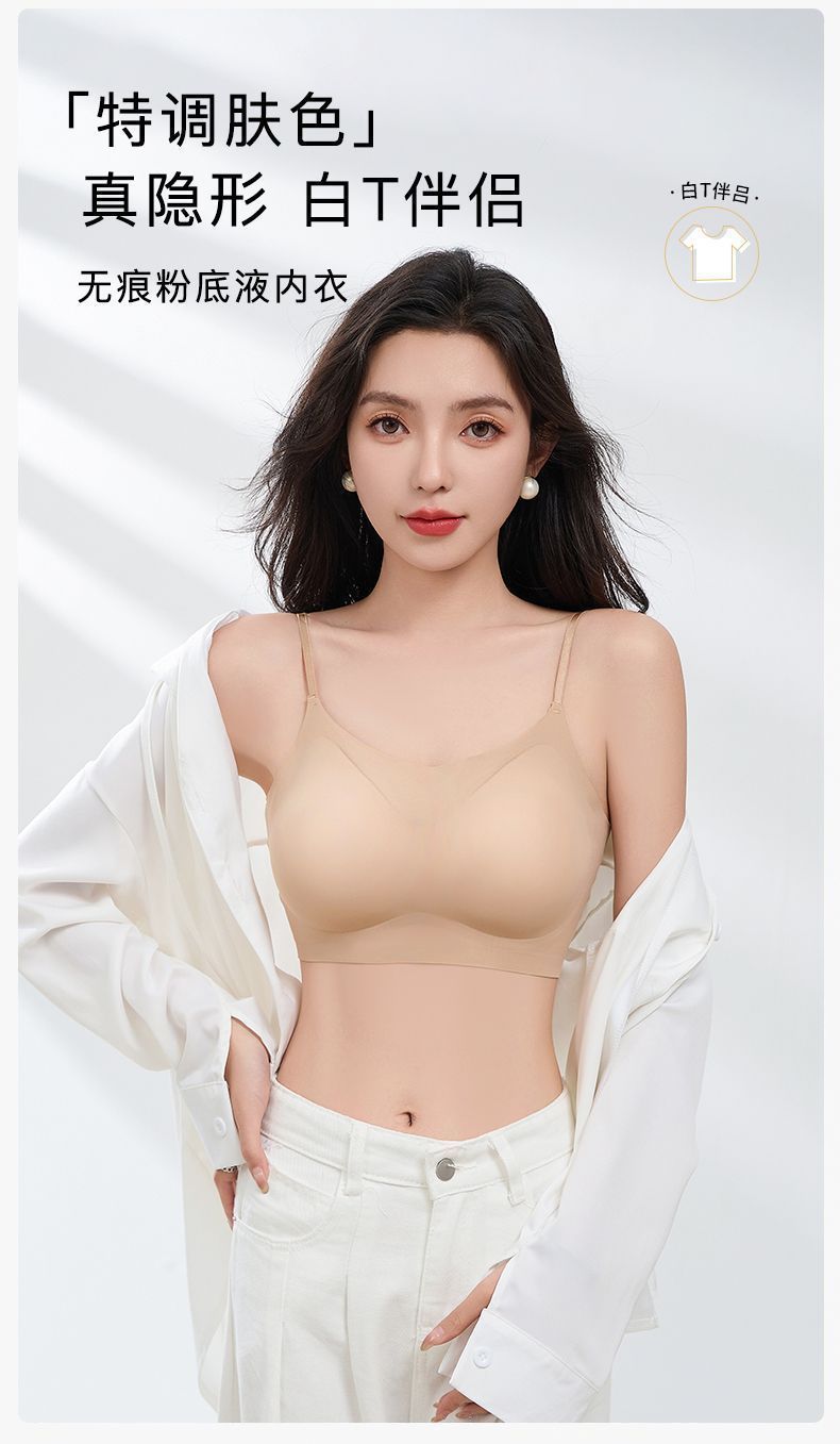 공장 직접 판매 국경 간 인기 리퀴드 파운데이션 보이지 않는 뷰티 백 브라 와이어 프리 푸시업 아이스 실크 심리스 스포츠 브라스토어 가기
