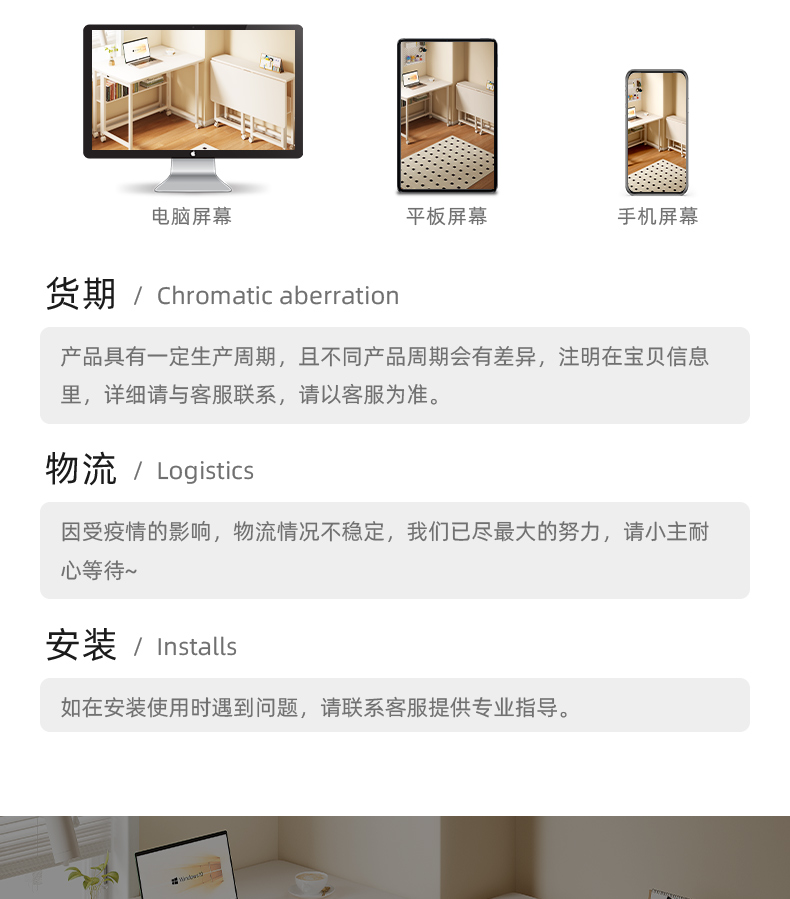 무료 배송 접이식 테이블 이동식 책상 소형 가정용 컴퓨터 책상 침실 침대 옆 테이블 간단한 학습 테이블 작업스토어 가기
