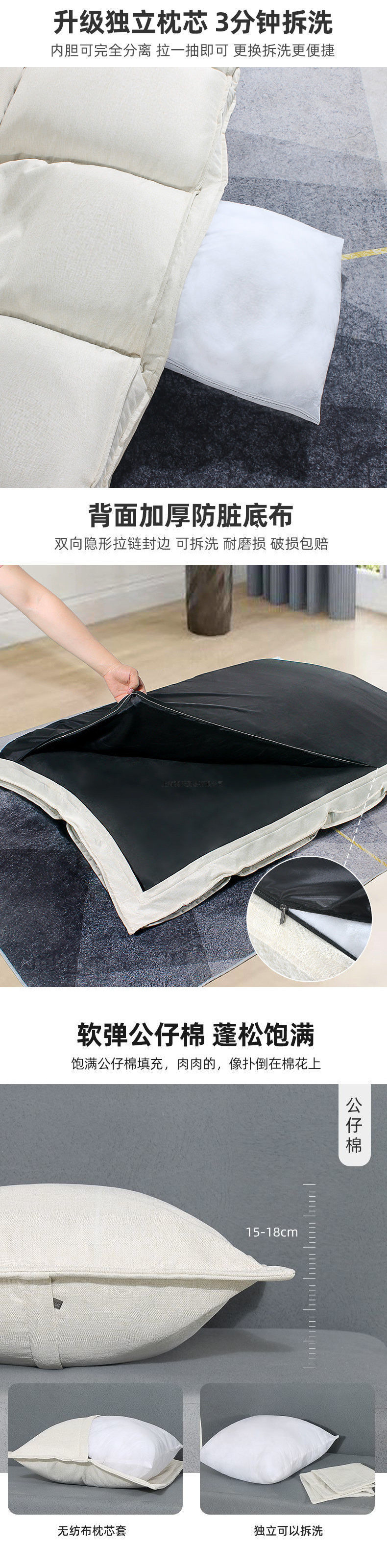 • 업그레이드 - 탈부착 및 세탁 가능한 오프화이트 1.8m개 + 베개 2개 ☆ ☆