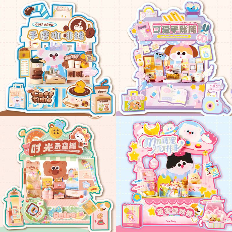 Yixin 귀여운 작은 가게 주인 미니어처 장면 DIY 미니 어린이 슈퍼마켓 조립 수제 작은 집 커피 하우스 여성스토어 가기