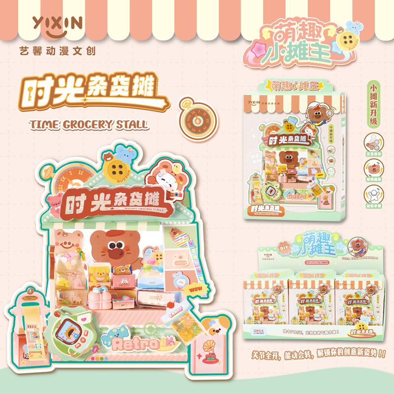 Yixin 귀여운 작은 가게 주인 미니어처 장면 DIY 미니 어린이 슈퍼마켓 조립 수제 작은 집 커피 하우스 여성