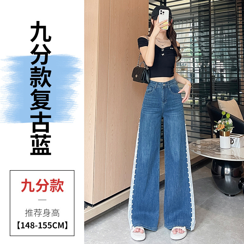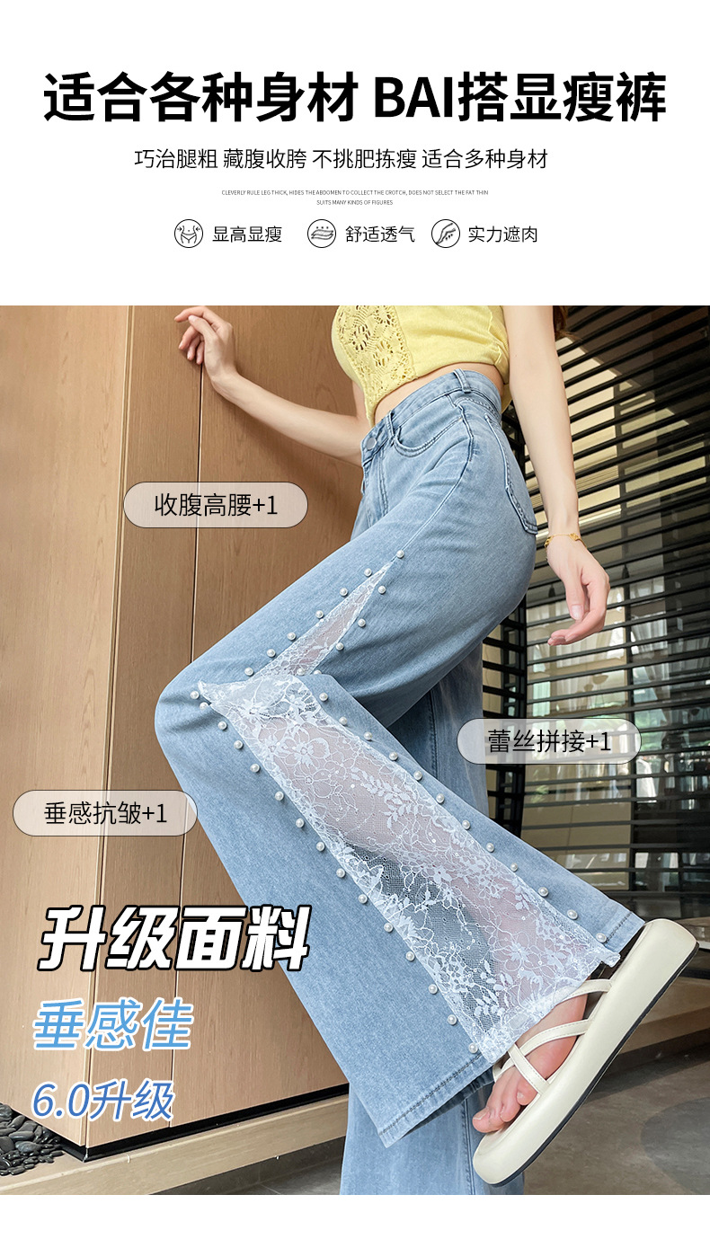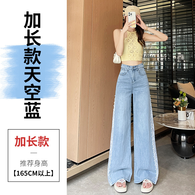 텐셀 비즈 레이스 와이드 레그 청바지 여성용 봄 여름 하이웨이스트 루즈핏 신축성 좋은 배형 체형 아이스 실크 플레어 팬츠스토어 가기