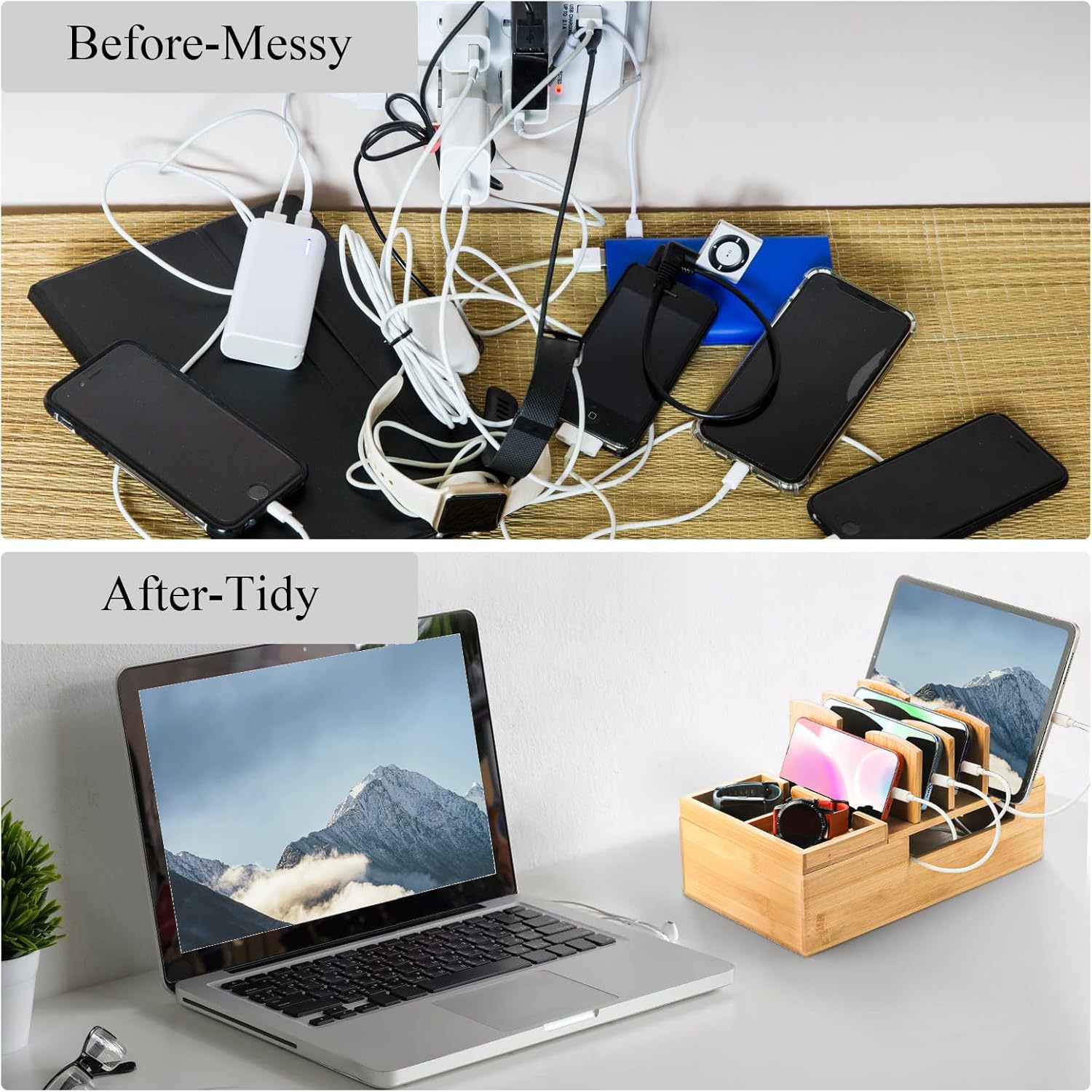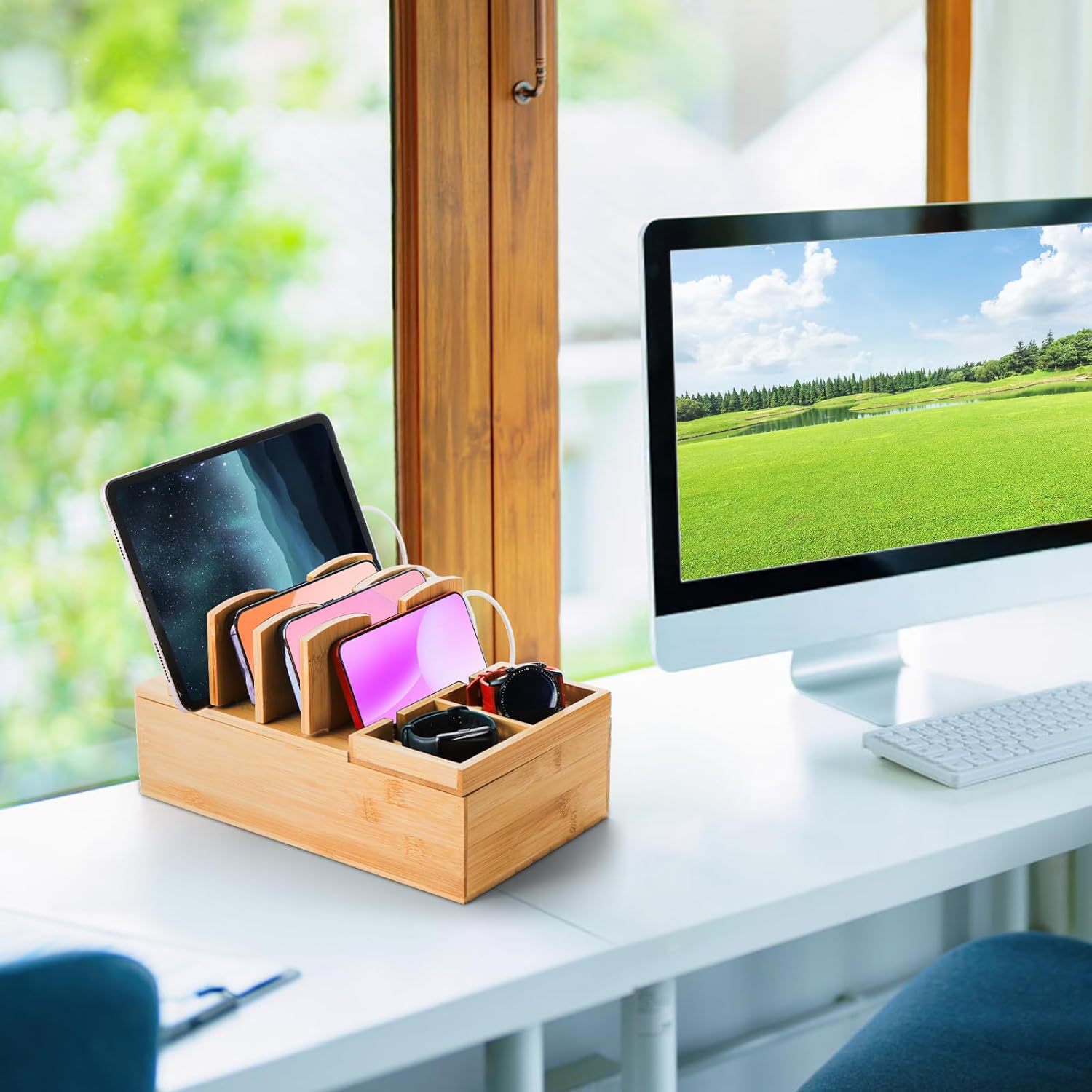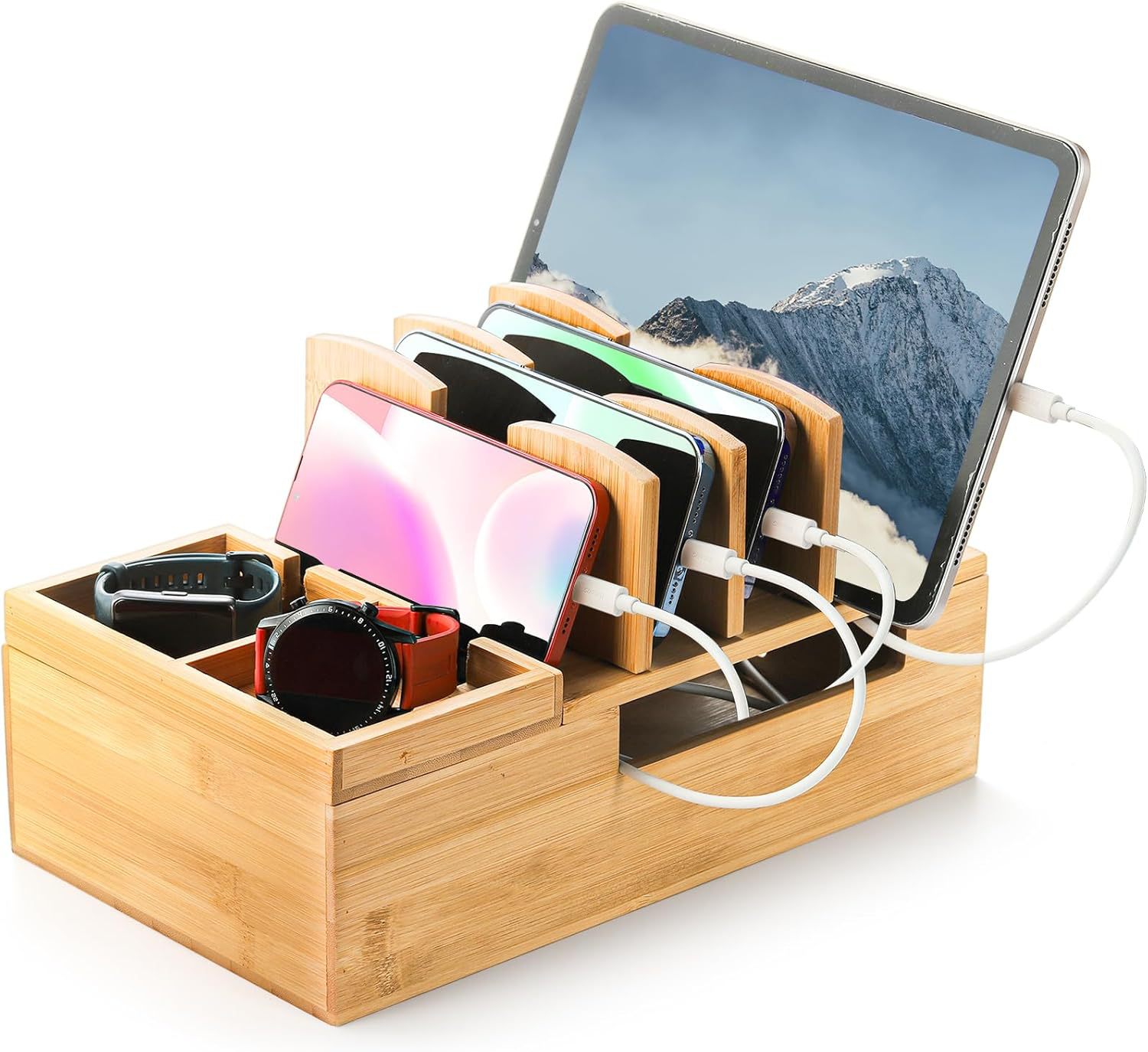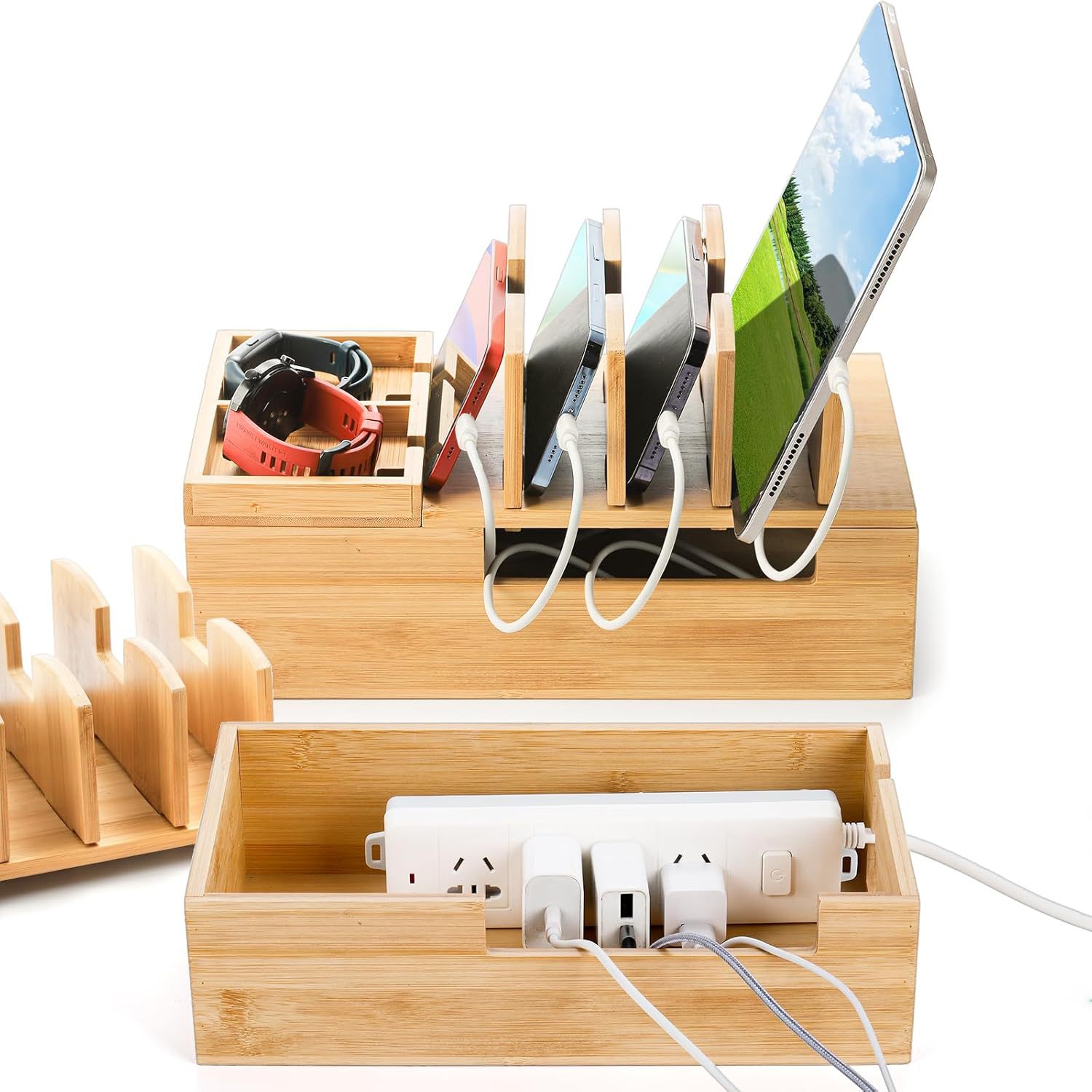 대나무 휴대 전화 태블릿 시계 충전 스탠드 보관함 데스크탑 다층 전자 제품 보관함