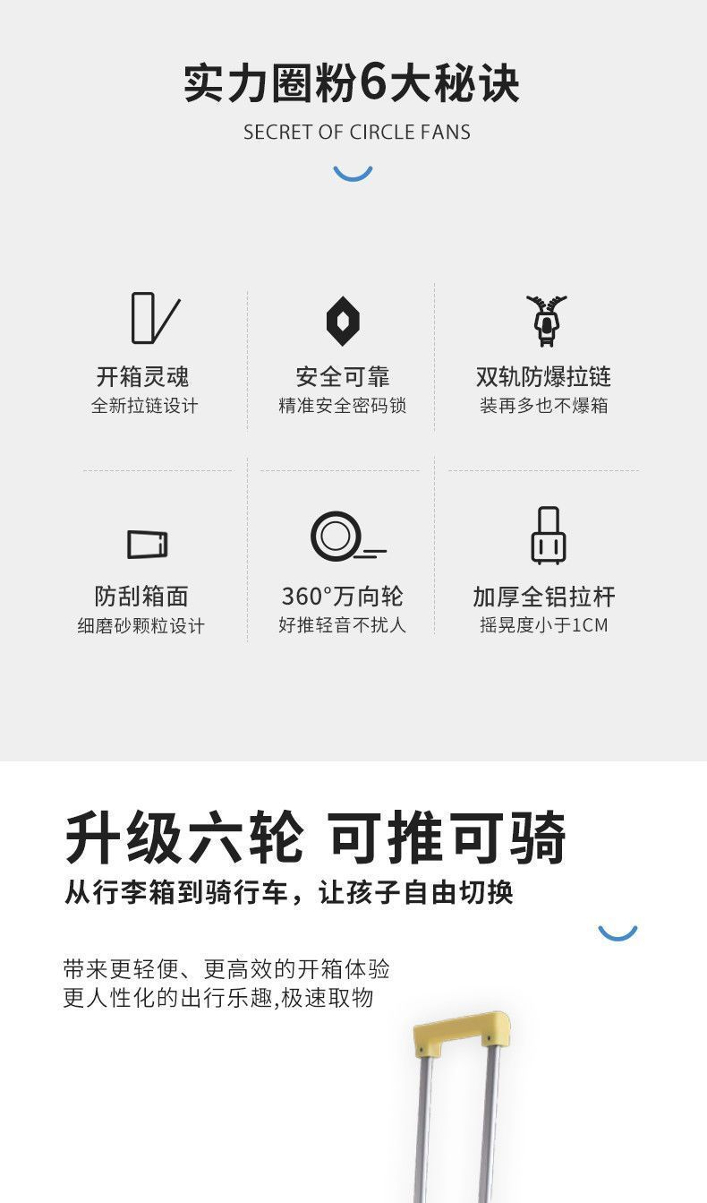 어린이 탑승 수하물 6륜 무소음 범용 휠 트롤리 케이스 튼튼한 여행가방 20inch 비밀번호 탑승 케이스스토어 가기
