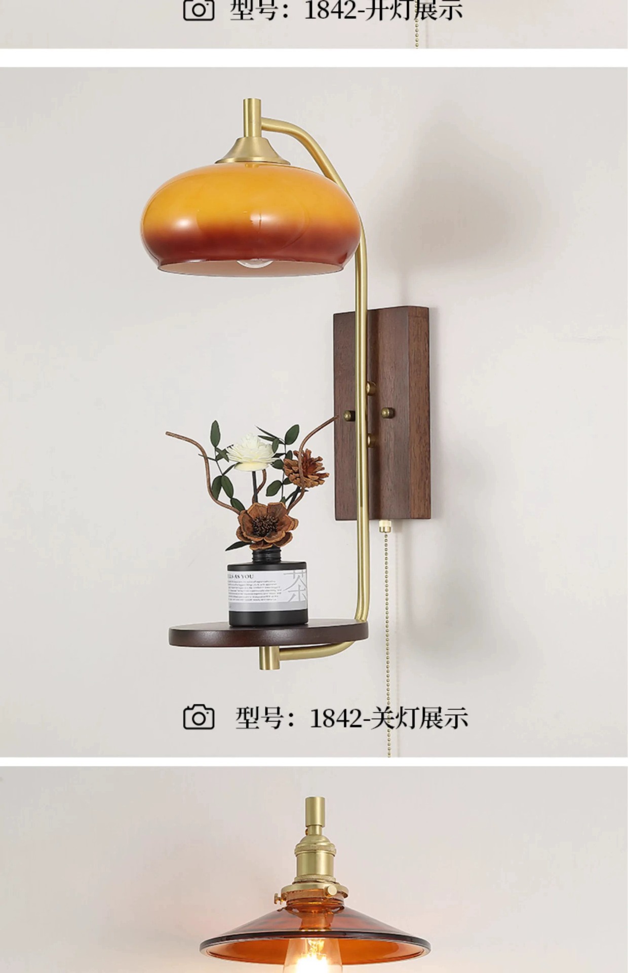 • 1848-구리+목재-따뜻한 빛-아로마테라피 장식품 없음[E27 전구]