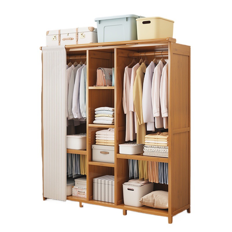 옷장 홈 침실 보관 임대 주택 경제적 인 간단한 조립 커튼 옷장 2024 새로운 스타일