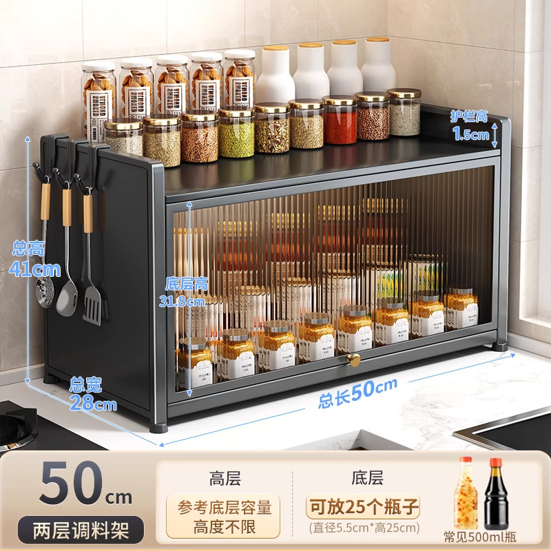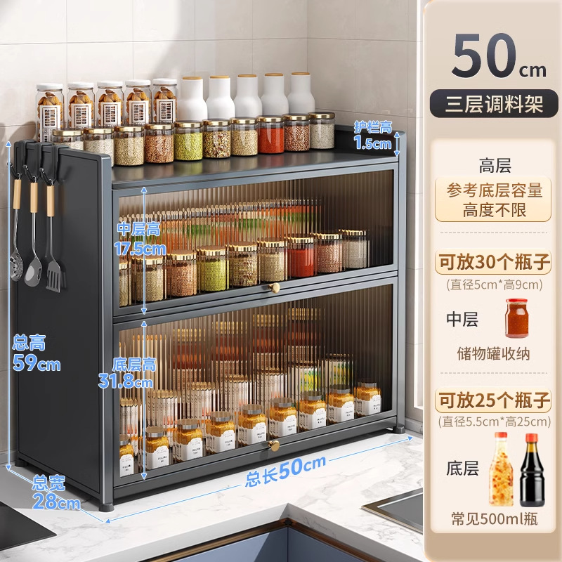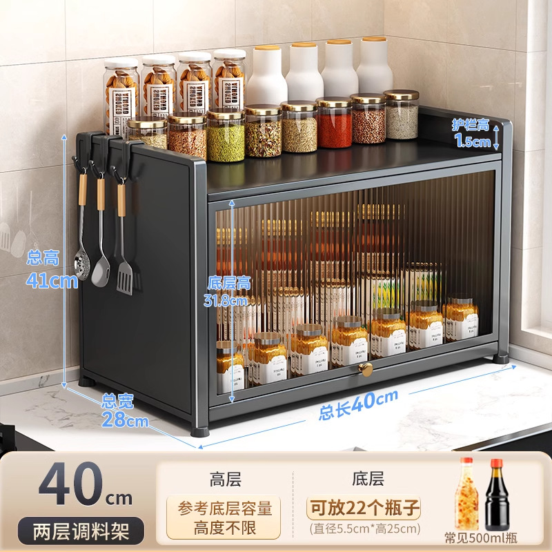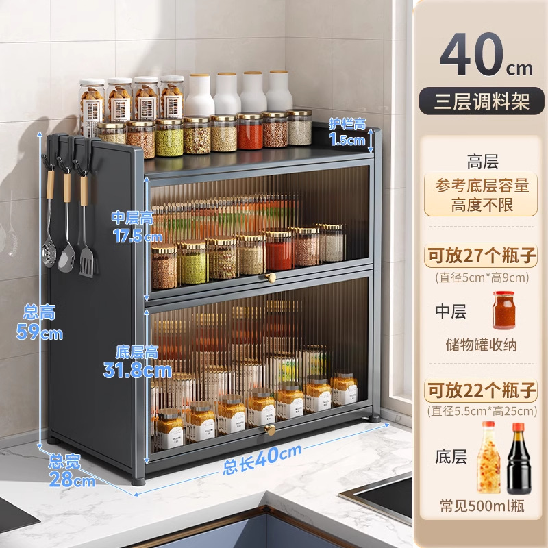 주방 수납 선반, 다층 다기능 수납 캐비닛, 방진 제품, 기름, 소금, 소스 및 식초 수납 선반, 도어 조리대 조미료 포함스토어 가기