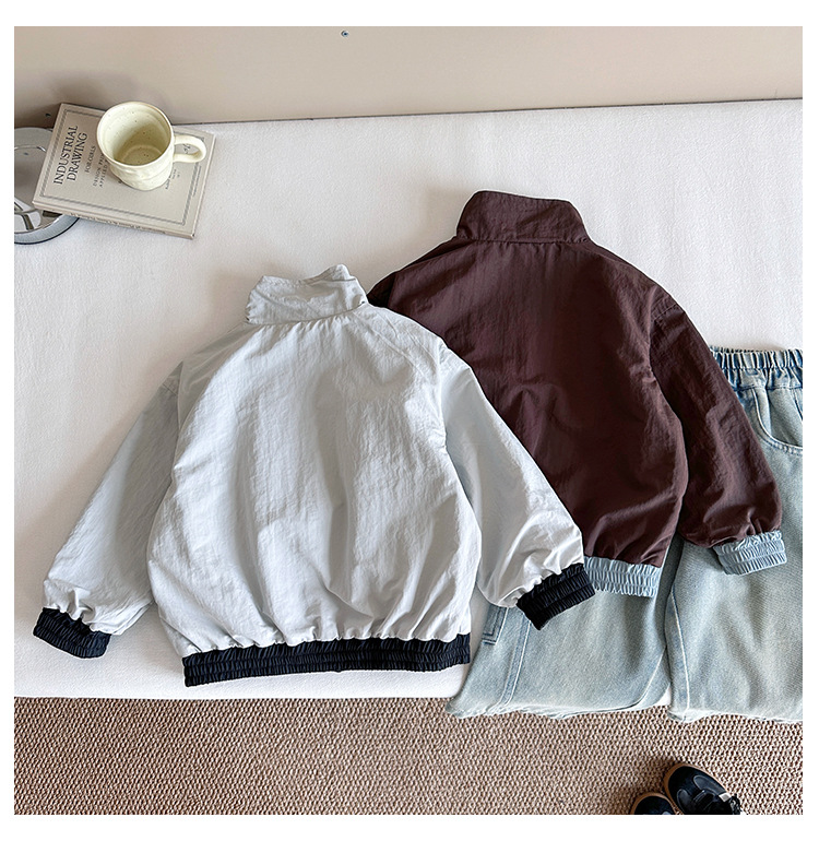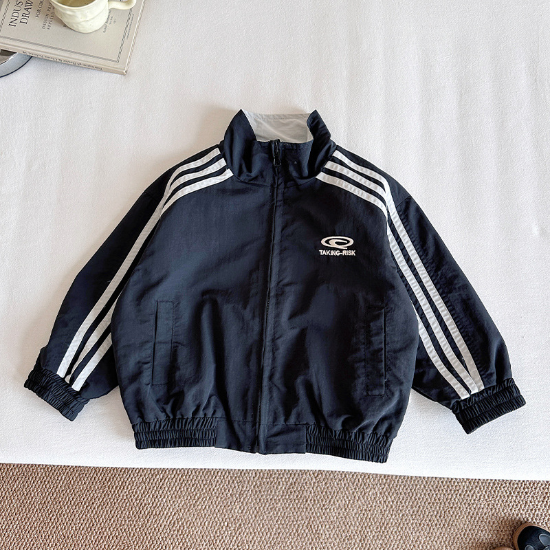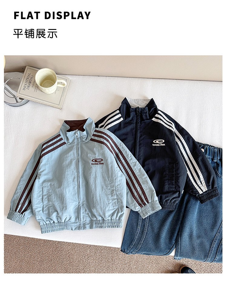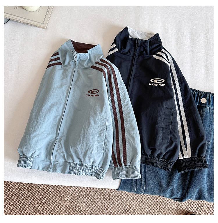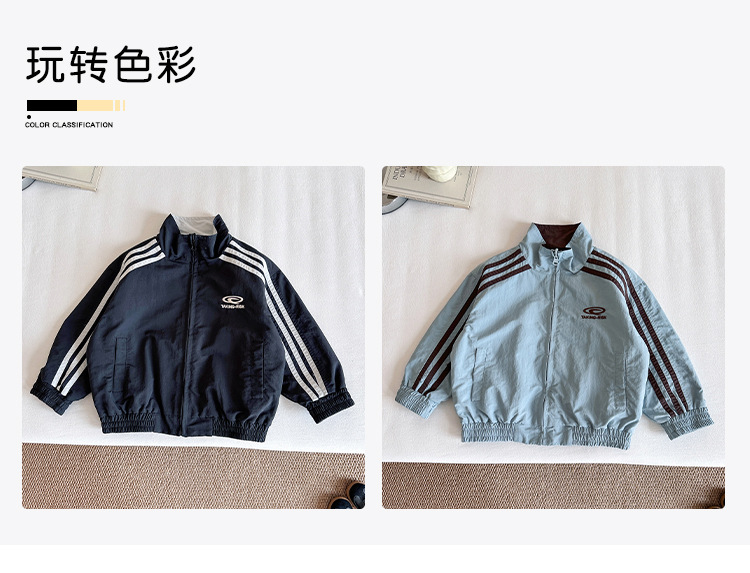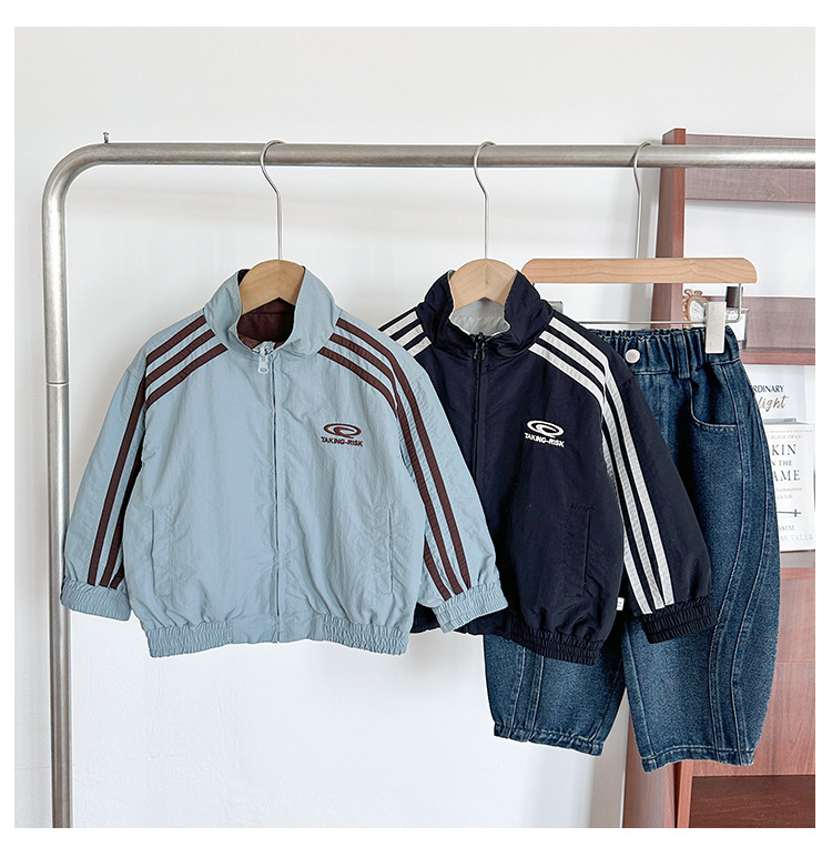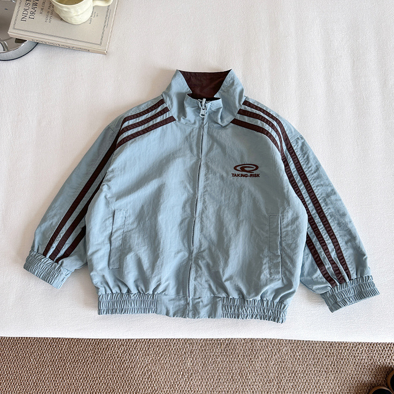 Xian'ao 2025 가을 신작 아동복 아동 한국어 버전 대비 색상 잘 생긴 재킷 소년 양면 스트라이프 재킷