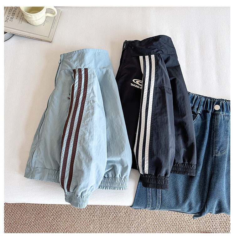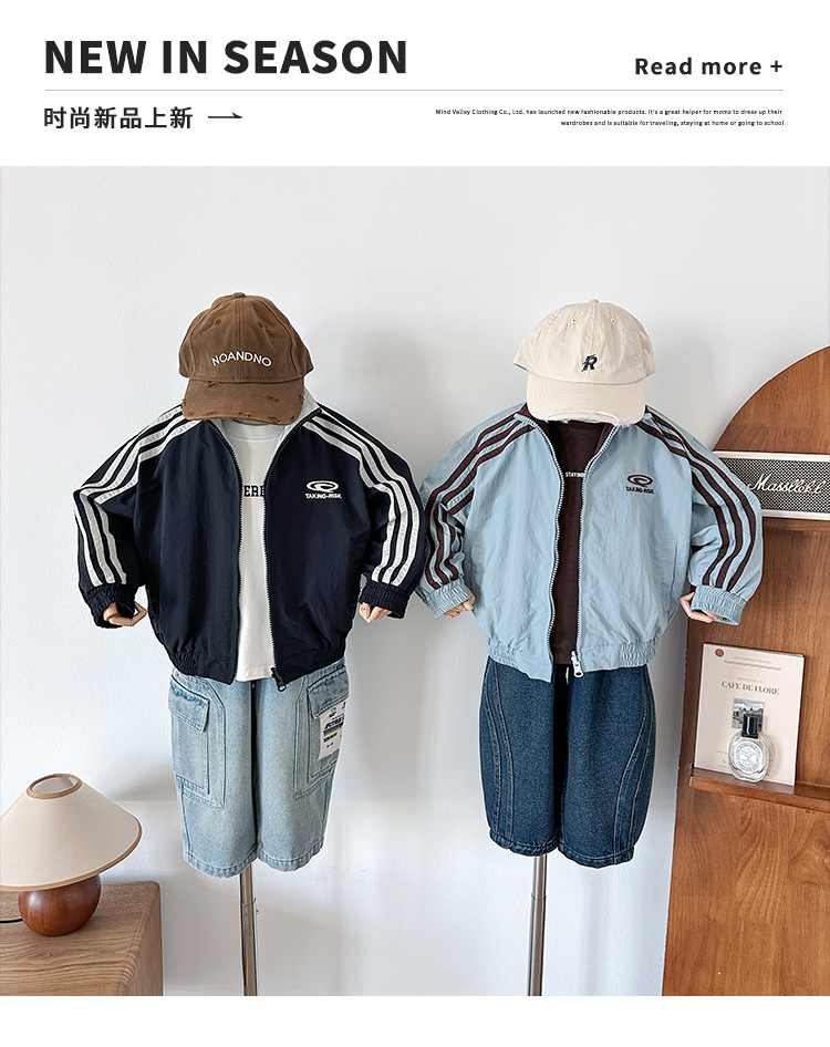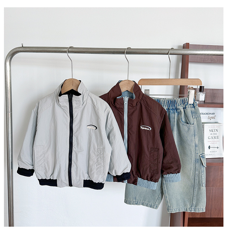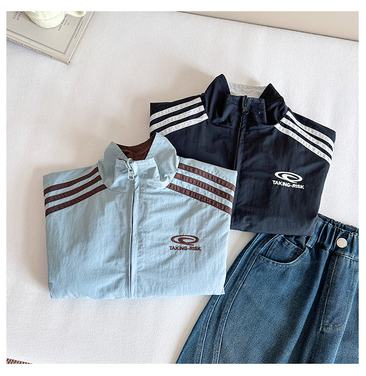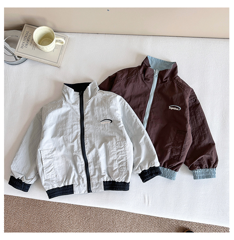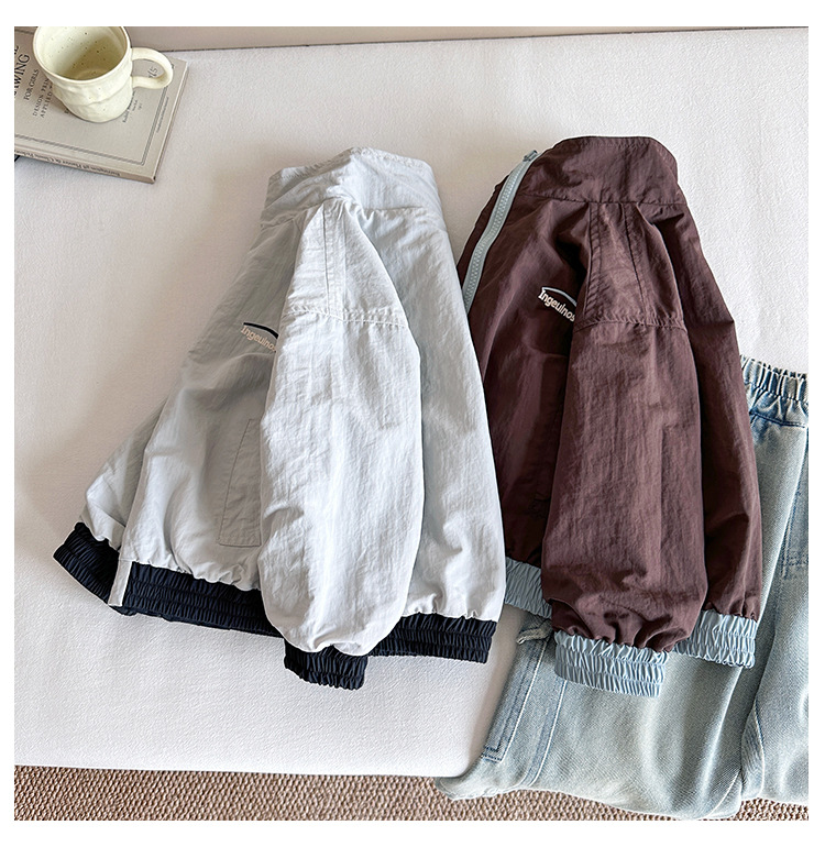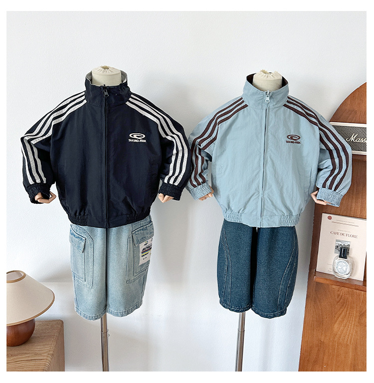 Xian'ao 2025 가을 신작 아동복 아동 한국어 버전 대비 색상 잘 생긴 재킷 소년 양면 스트라이프 재킷