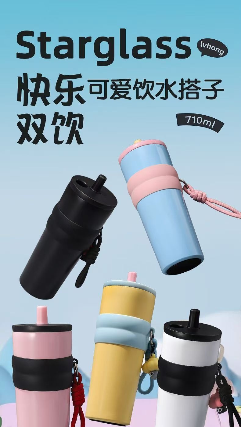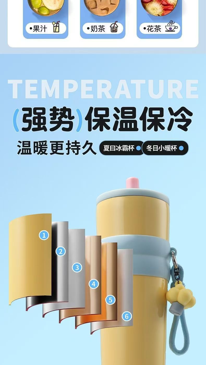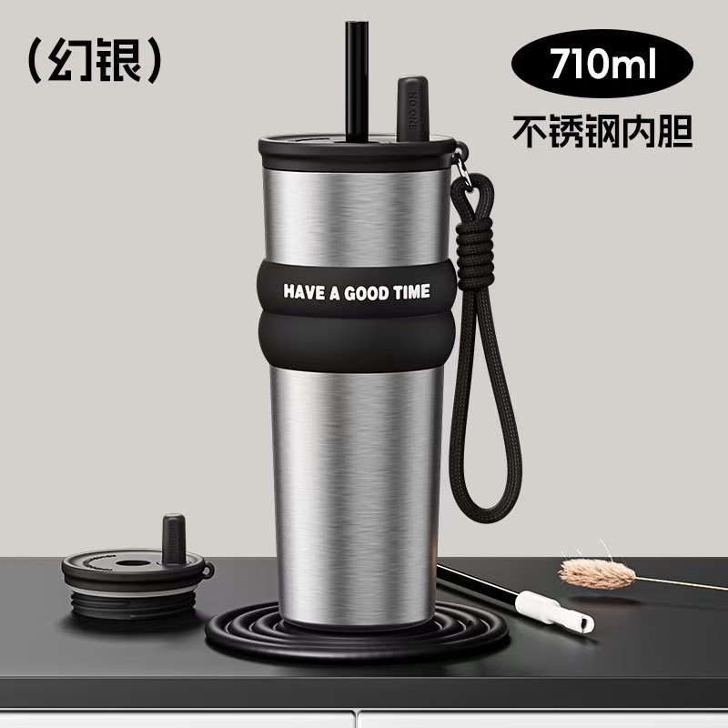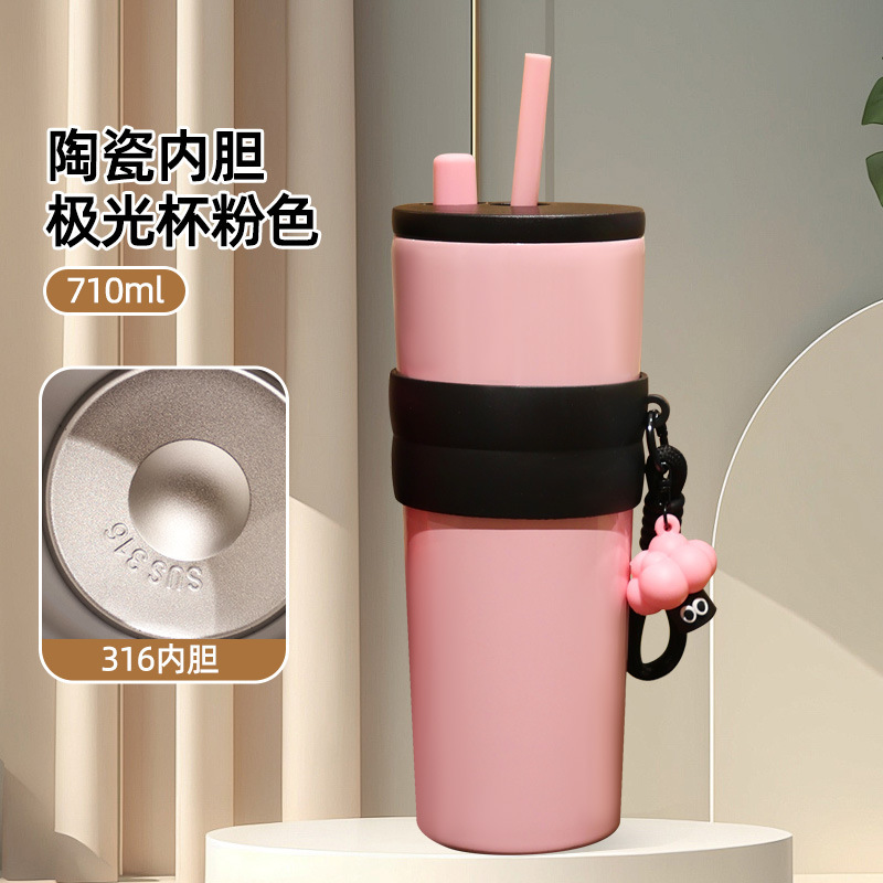 高颜值保温杯316不锈钢杯子简约家用水杯大容量冰霸杯加厚吸管杯