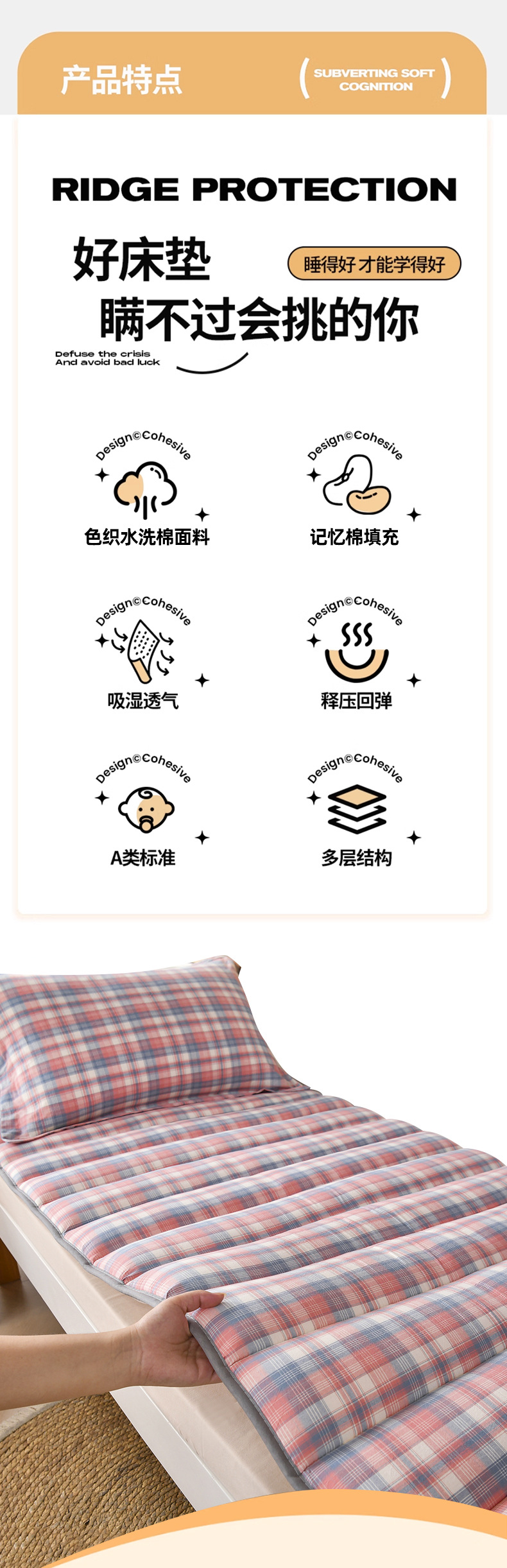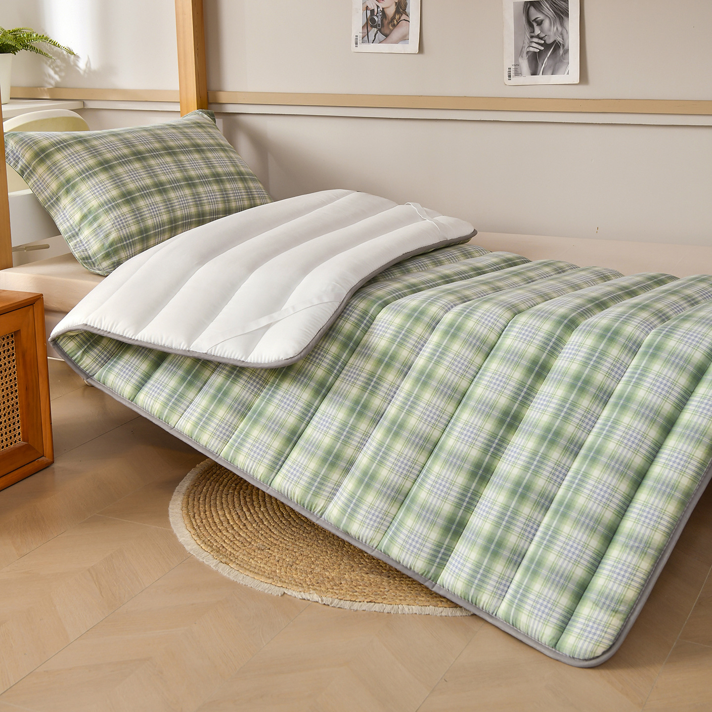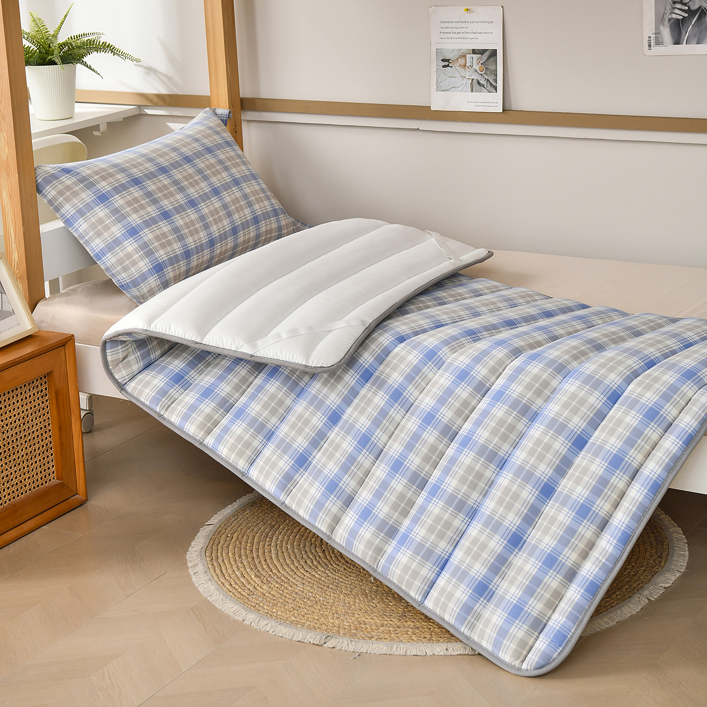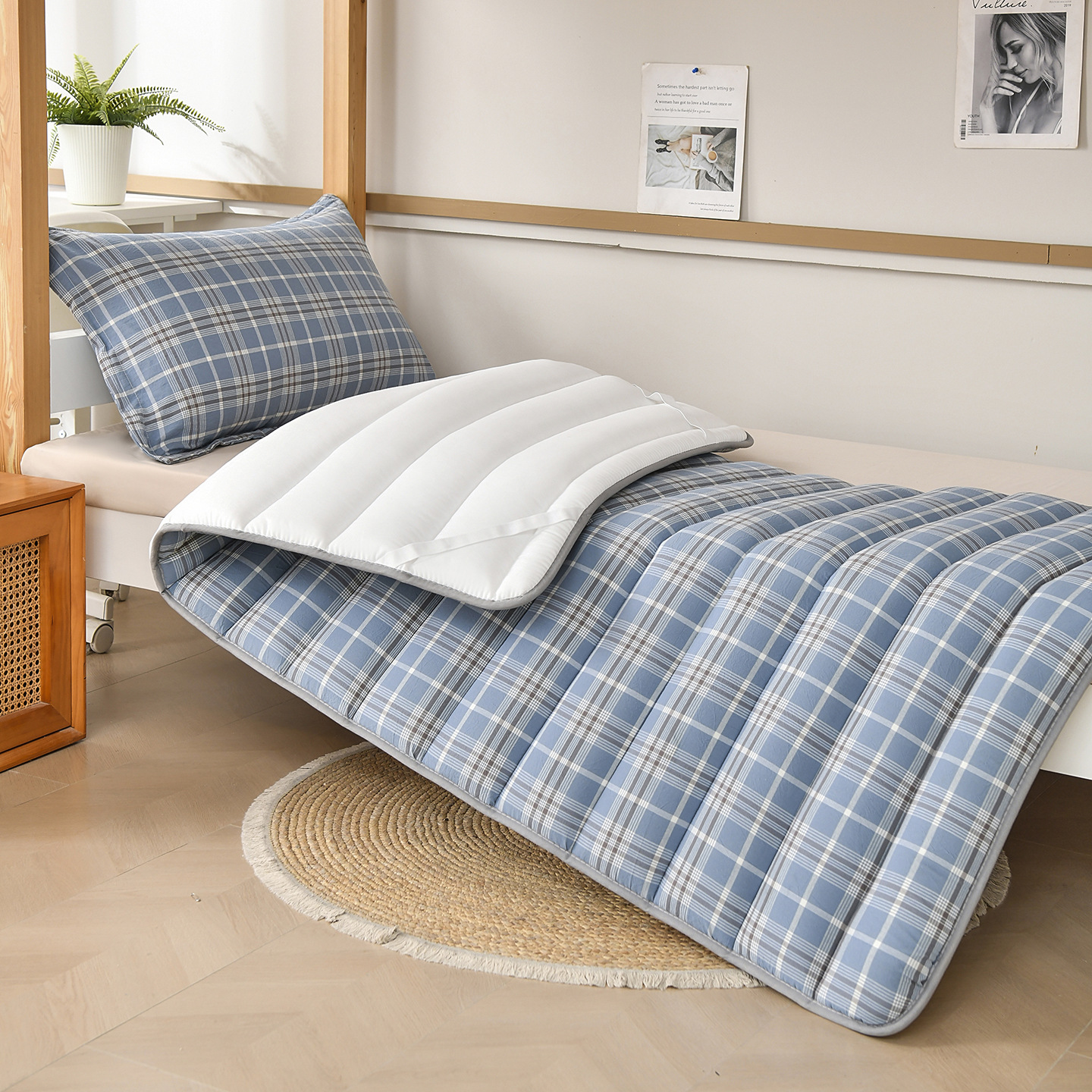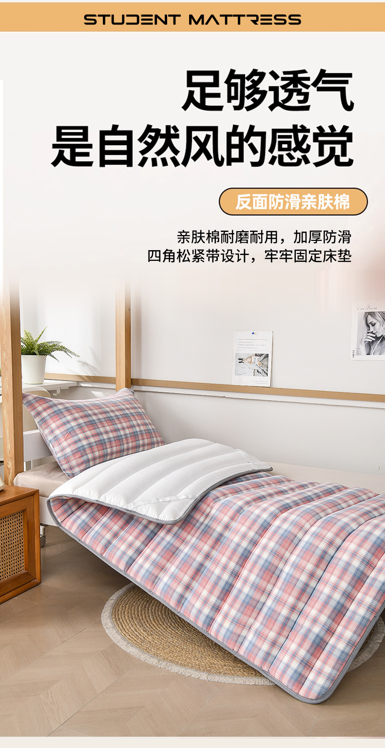 새로운 클래스 A 원사 염색 워시 코튼 학생 매트리스 기숙사 싱글 매트리스 도매 학교 시즌 학생 매트리스 패드