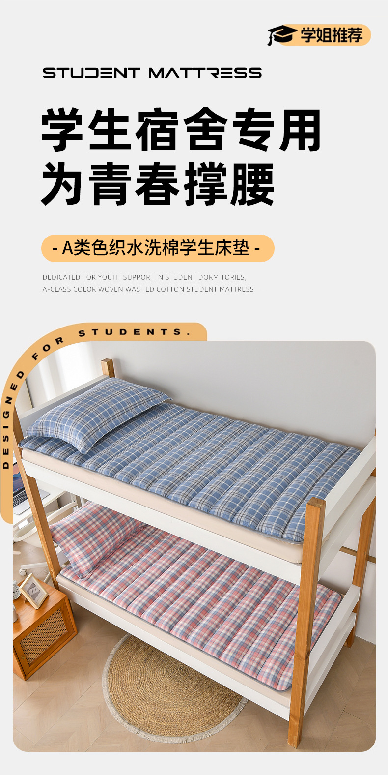 새로운 클래스 A 원사 염색 워시 코튼 학생 매트리스 기숙사 싱글 매트리스 도매 학교 시즌 학생 매트리스 패드스토어 가기