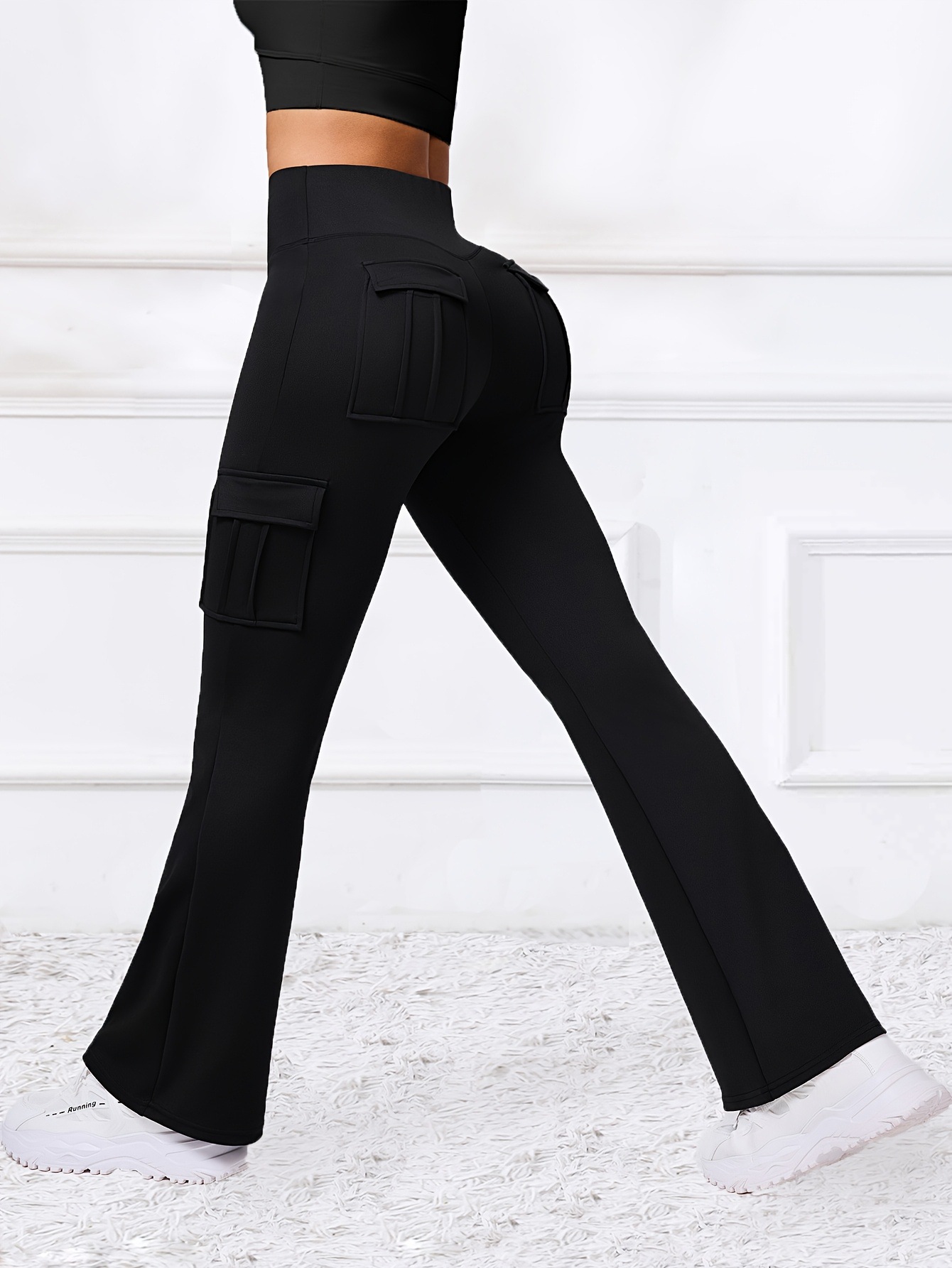 국경 간 인기 요가 바지 하이 웨이스트 플레어 작업복 포켓 바지 여성용 엉덩이 리프팅 슬리밍 복부 피트니스 스포츠 바지 여성용