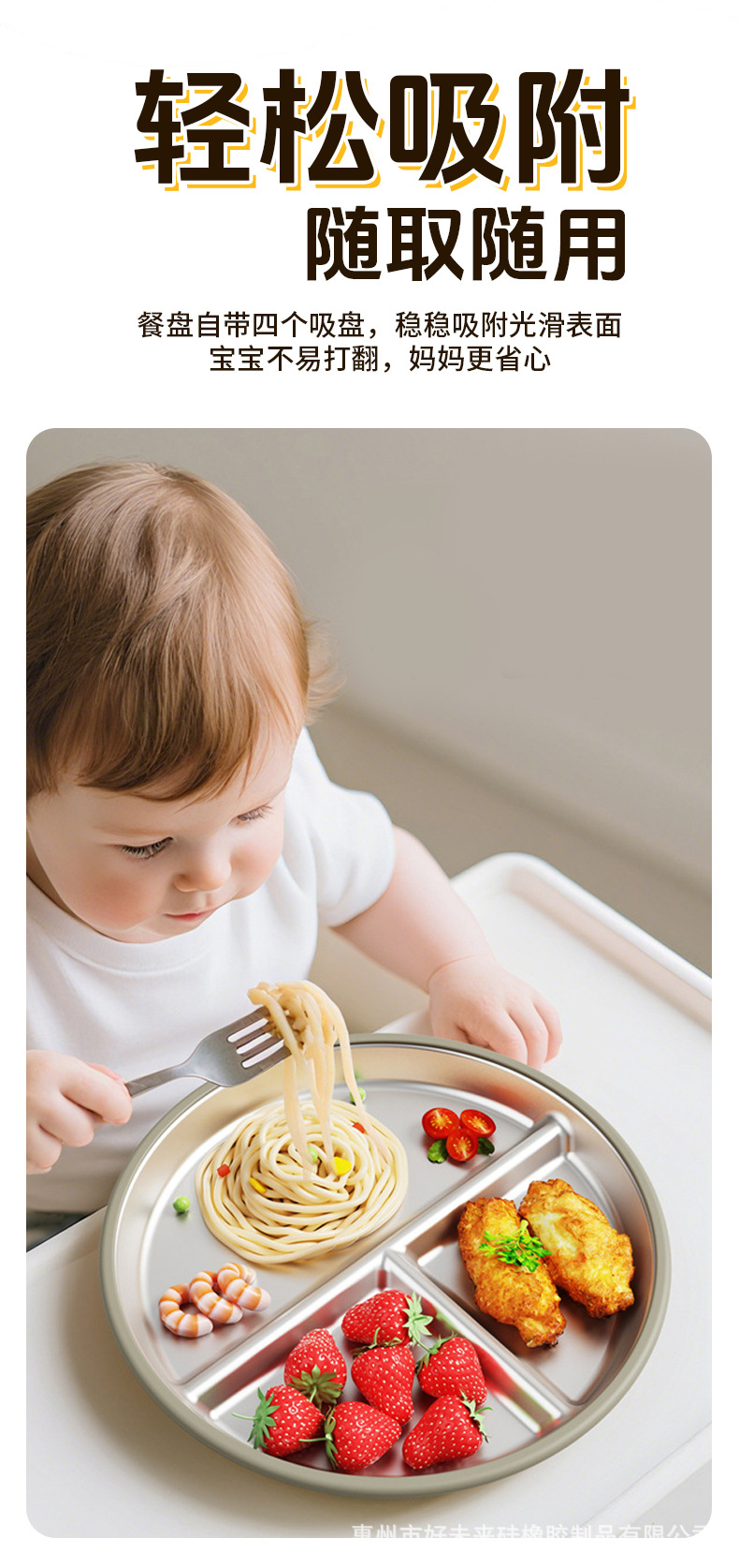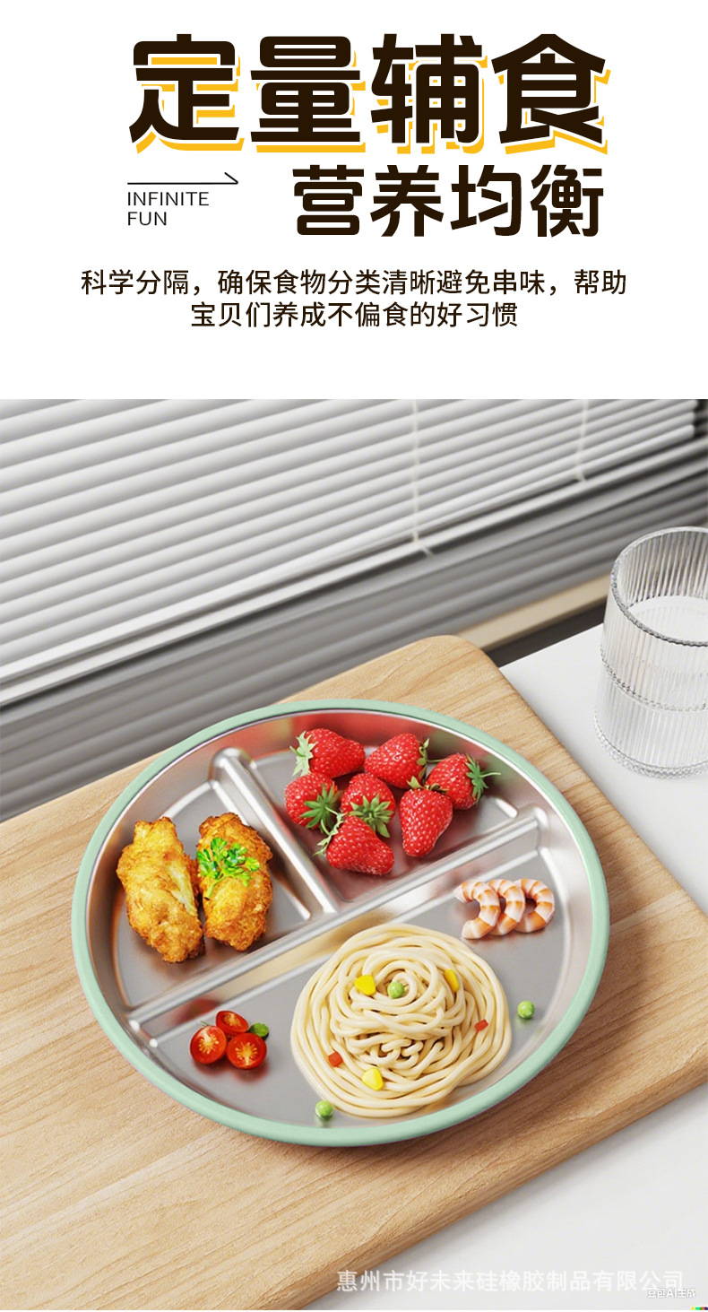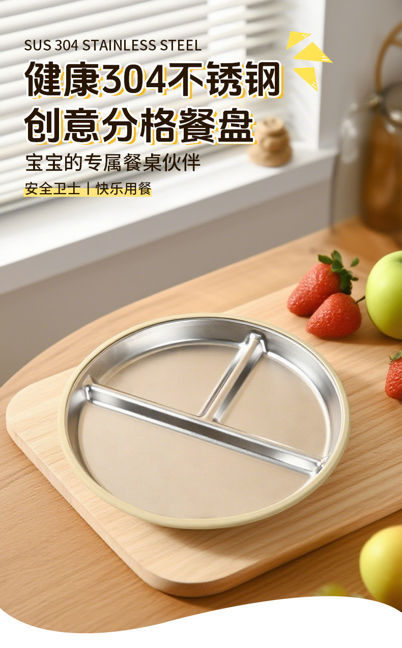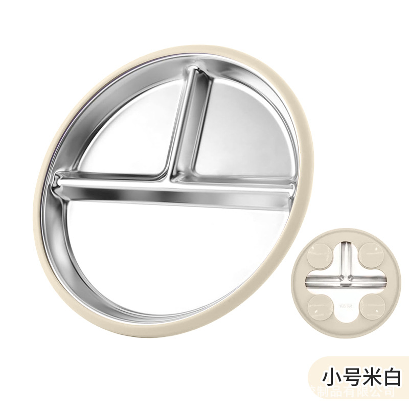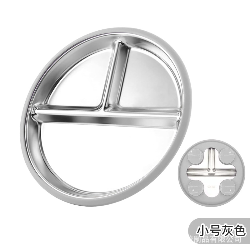 국경 간 어린이 스테인레스 스틸 실리콘 디너 플레이트 20 ~ 23cm 디너 플레이트 넘어짐 방지 학습 식사 훈련 먹이 식기스토어 가기
