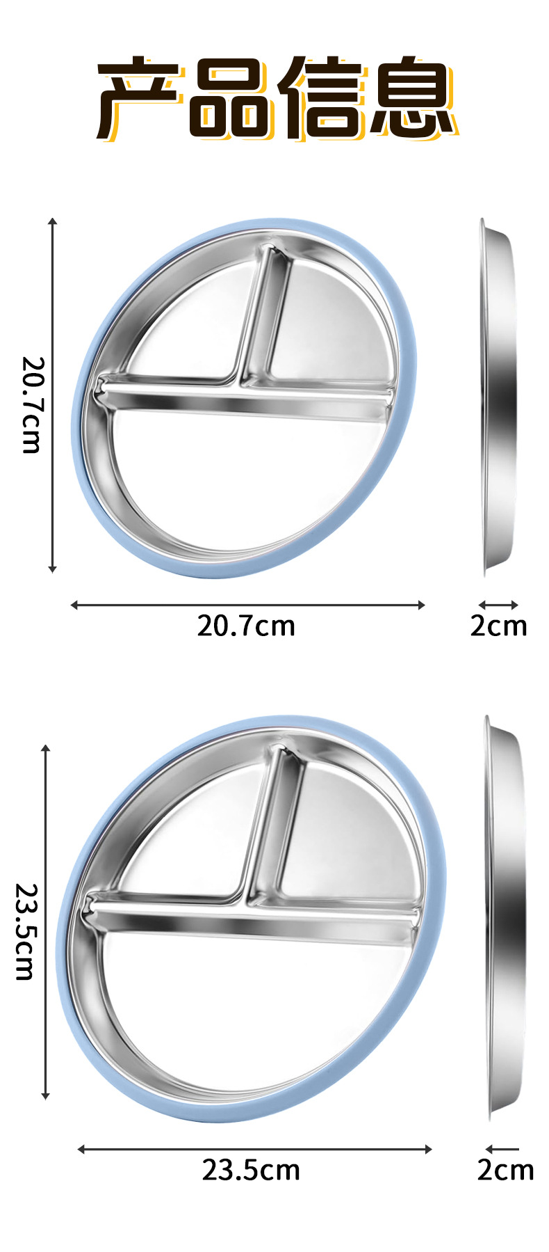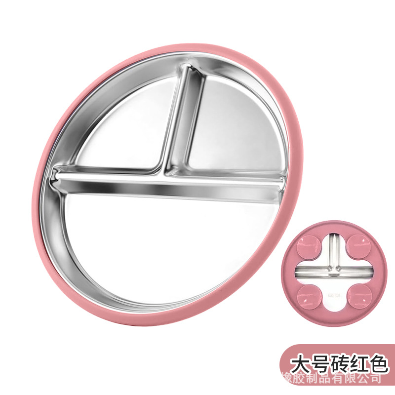 국경 간 어린이 스테인레스 스틸 실리콘 디너 플레이트 20 ~ 23cm 디너 플레이트 넘어짐 방지 학습 식사 훈련 먹이 식기
