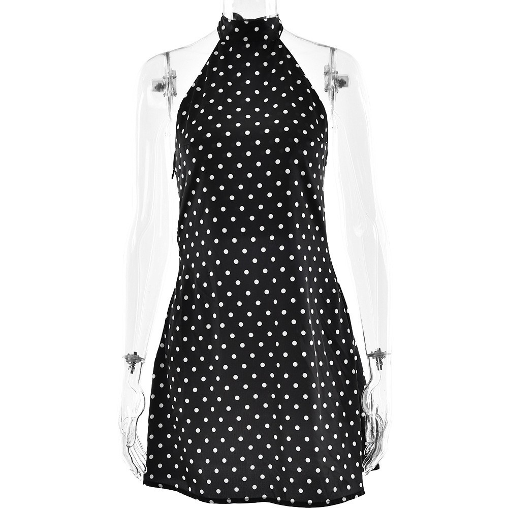 유럽과 미국 스타일의 2025 새로운 여름 스타일 프렌치 폴카 도트 슬림 드레스 섹시한 백리스 스트랩 핫 소녀 스커트스토어 가기