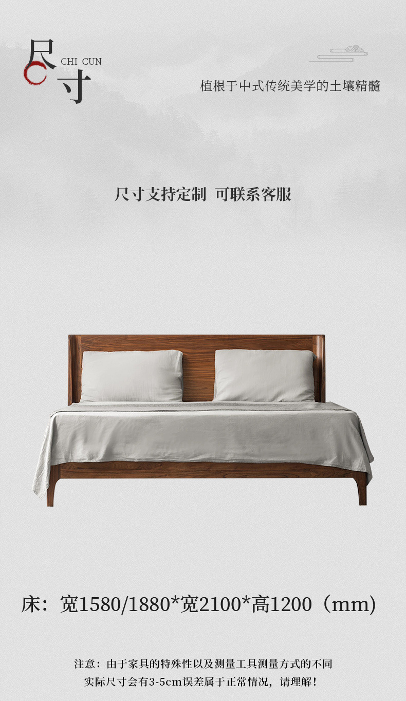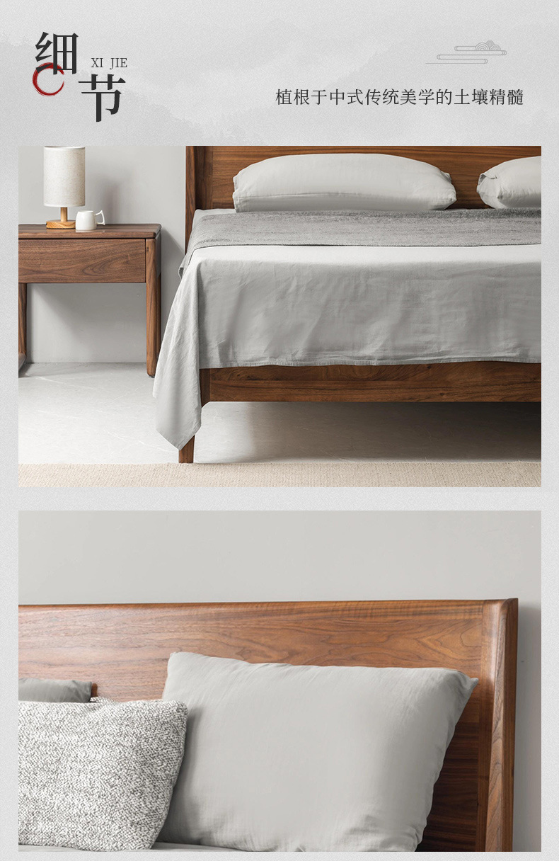 현대적인 심플한 북미 검은 호두나무 침대 새로운 중국 스타일의 마스터 침실 대형 침대 2M 더블 침대 일본식 중세 스타일 단단한 나무 침대스토어 가기