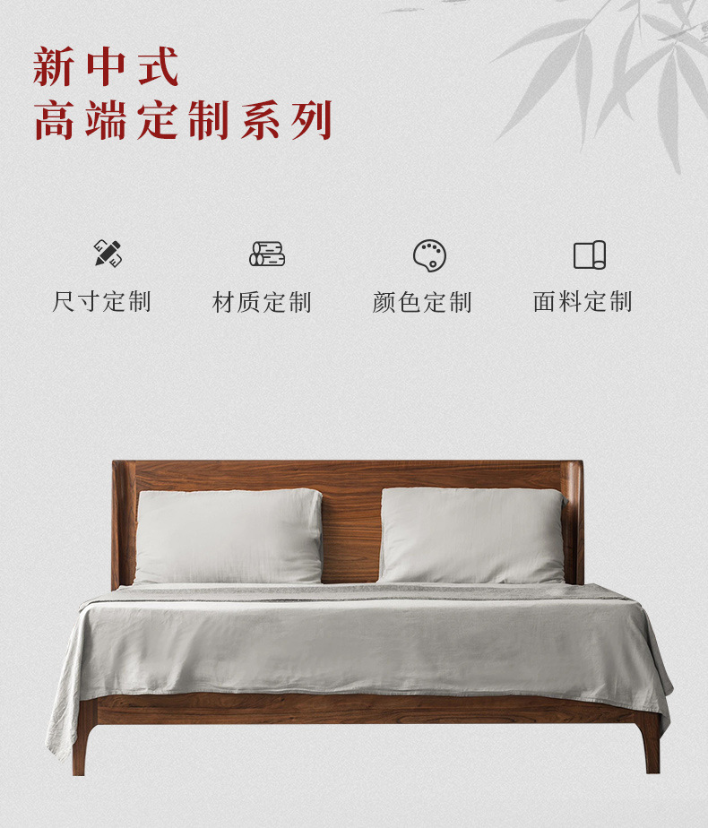 현대적인 심플한 북미 검은 호두나무 침대 새로운 중국 스타일의 마스터 침실 대형 침대 2M 더블 침대 일본식 중세 스타일 단단한 나무 침대