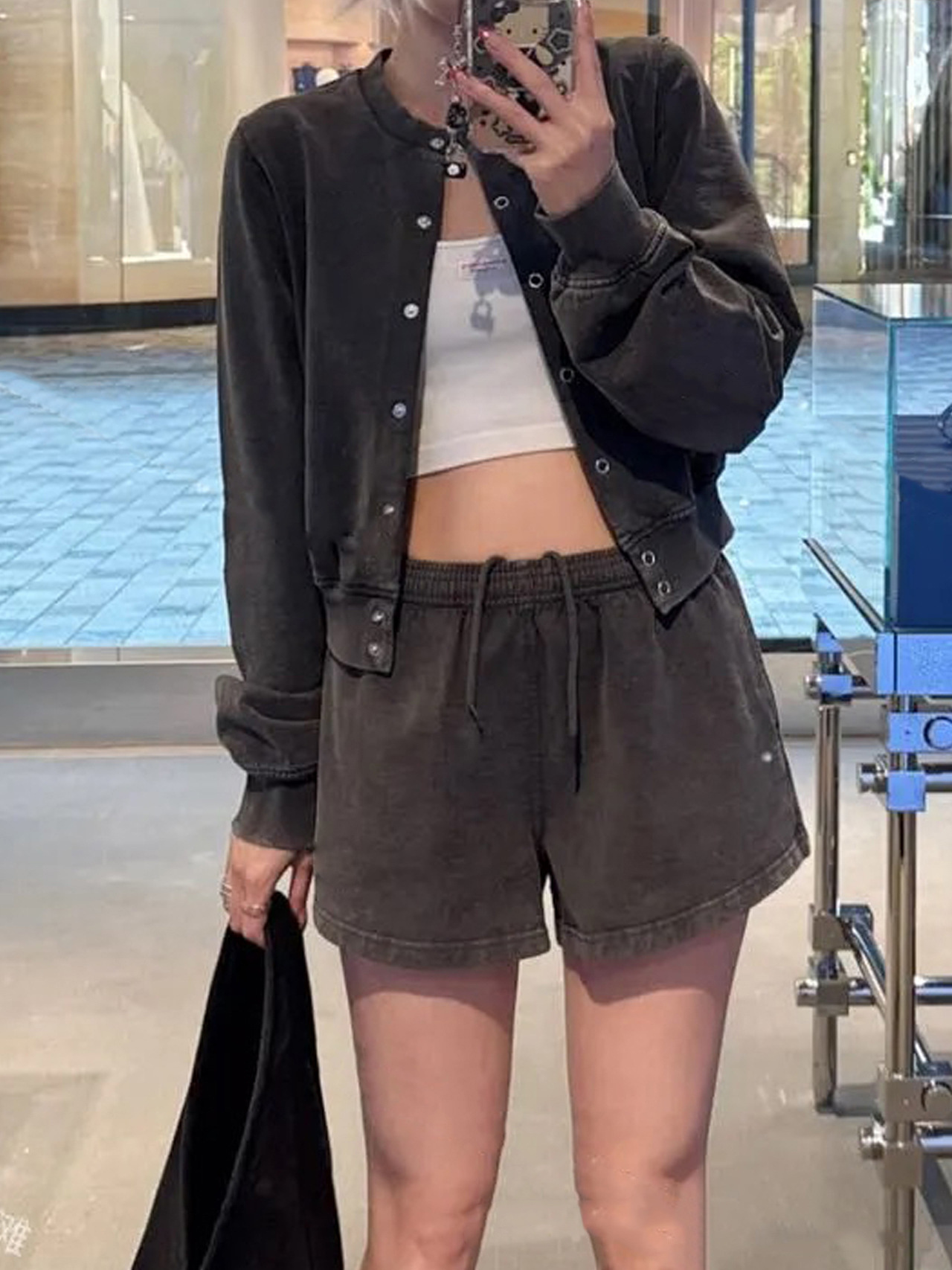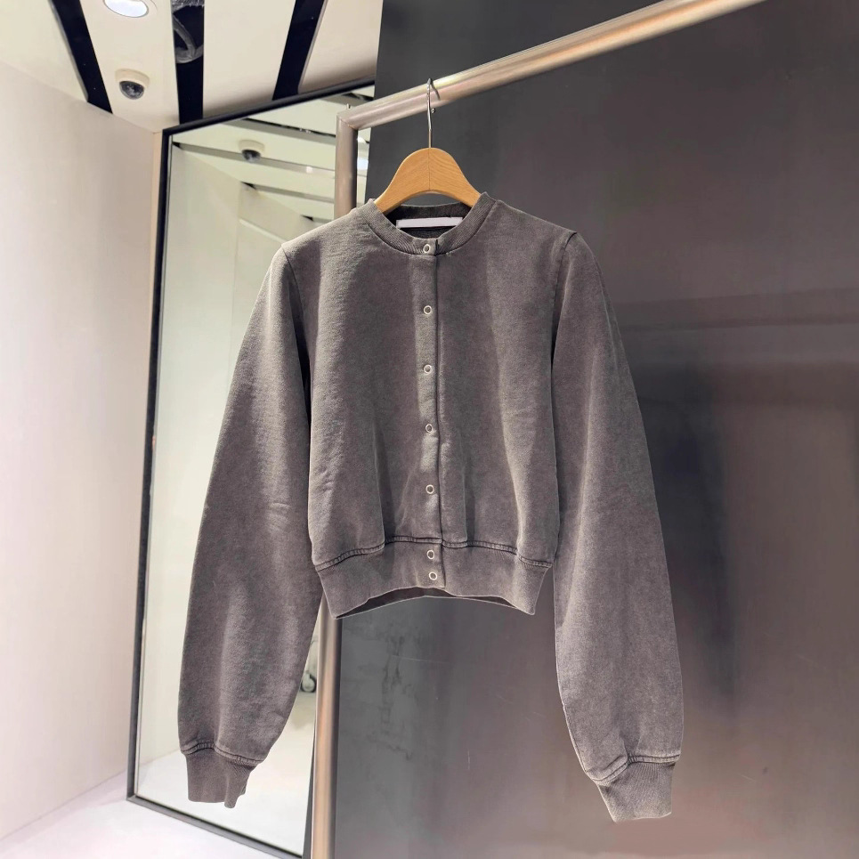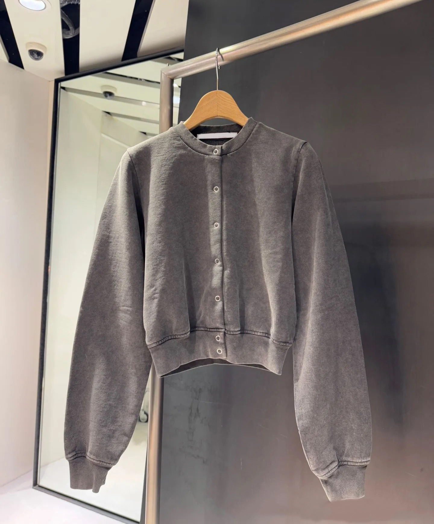 25 초가을 새로운 스타일의 문자 자수 워싱 및 디스트레스드 야구 유니폼 오른쪽 어깨 짧은 코트 재킷 탑 여성용