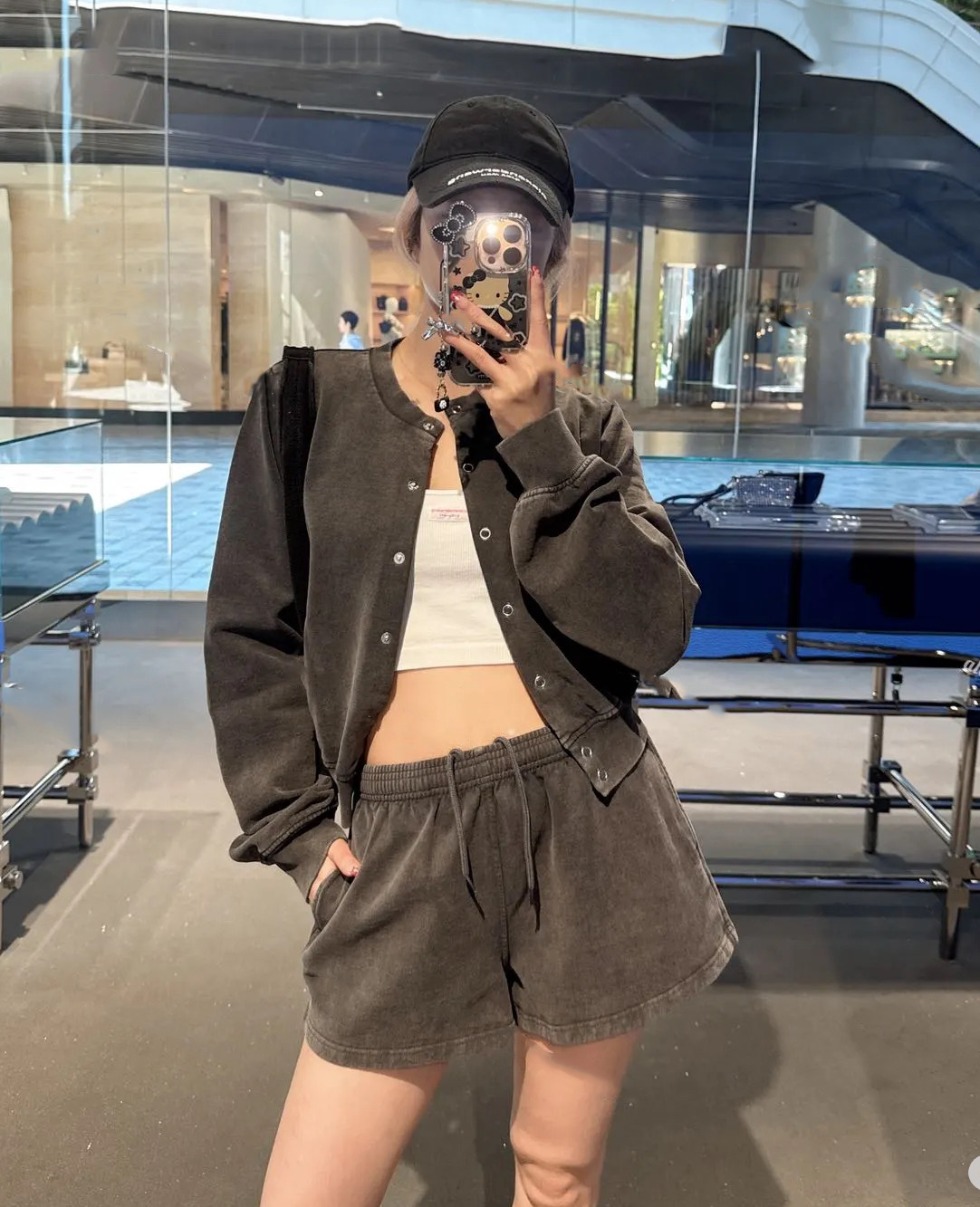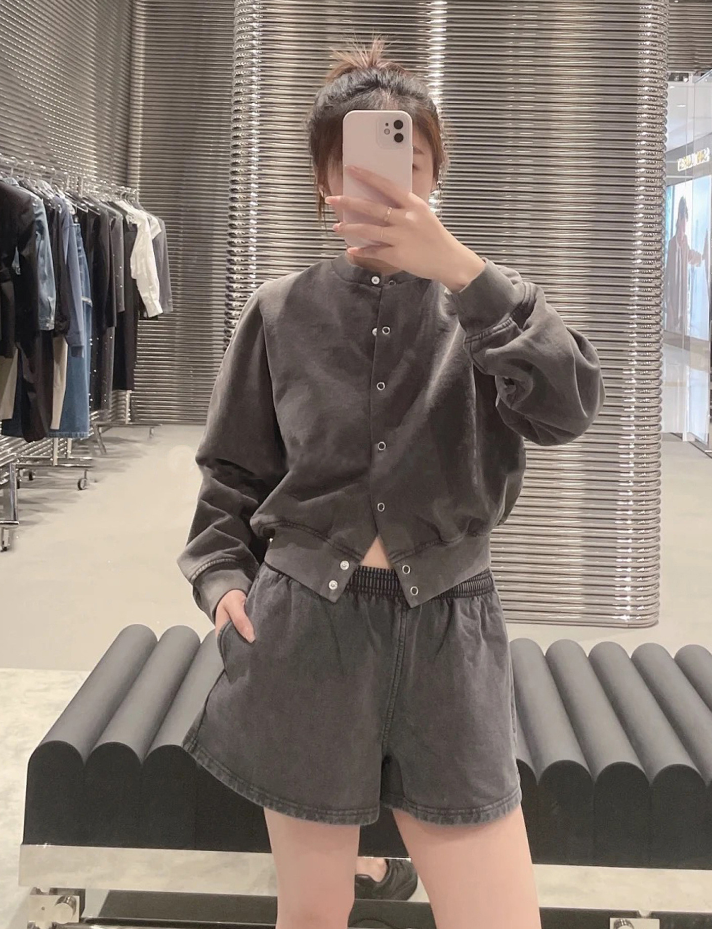 25 초가을 새로운 스타일의 문자 자수 워싱 및 디스트레스드 야구 유니폼 오른쪽 어깨 짧은 코트 재킷 탑 여성용스토어 가기