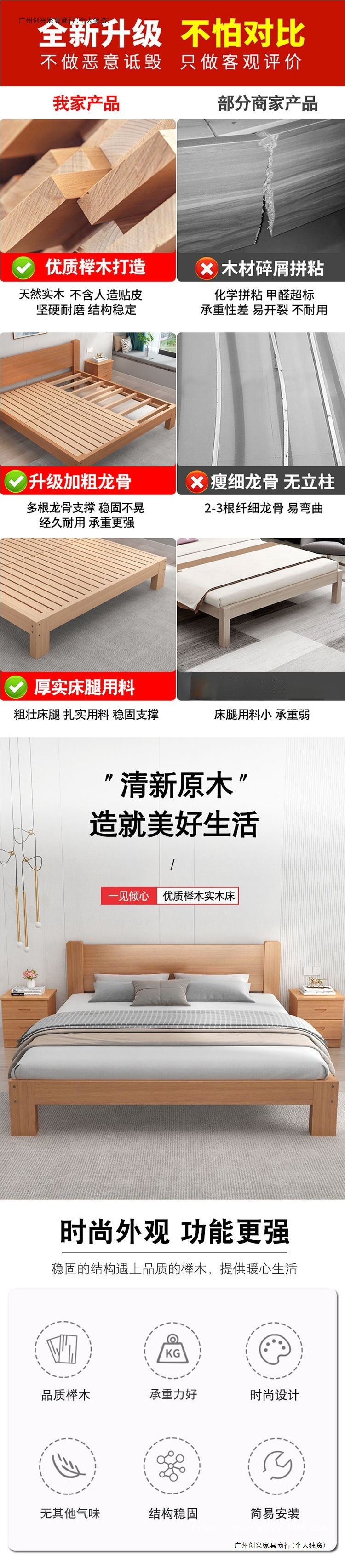 너도밤나무 원목 침대 모던 심플 1.8m 더블 싱글 침대 1.5 홈 렌탈 다다미 심플 침대 프레임