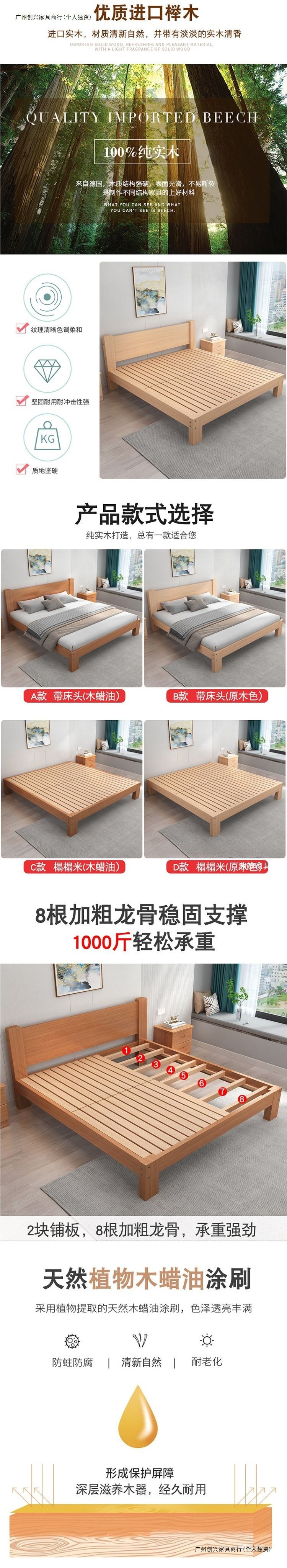 너도밤나무 원목 침대 모던 심플 1.8m 더블 싱글 침대 1.5 홈 렌탈 다다미 심플 침대 프레임스토어 가기