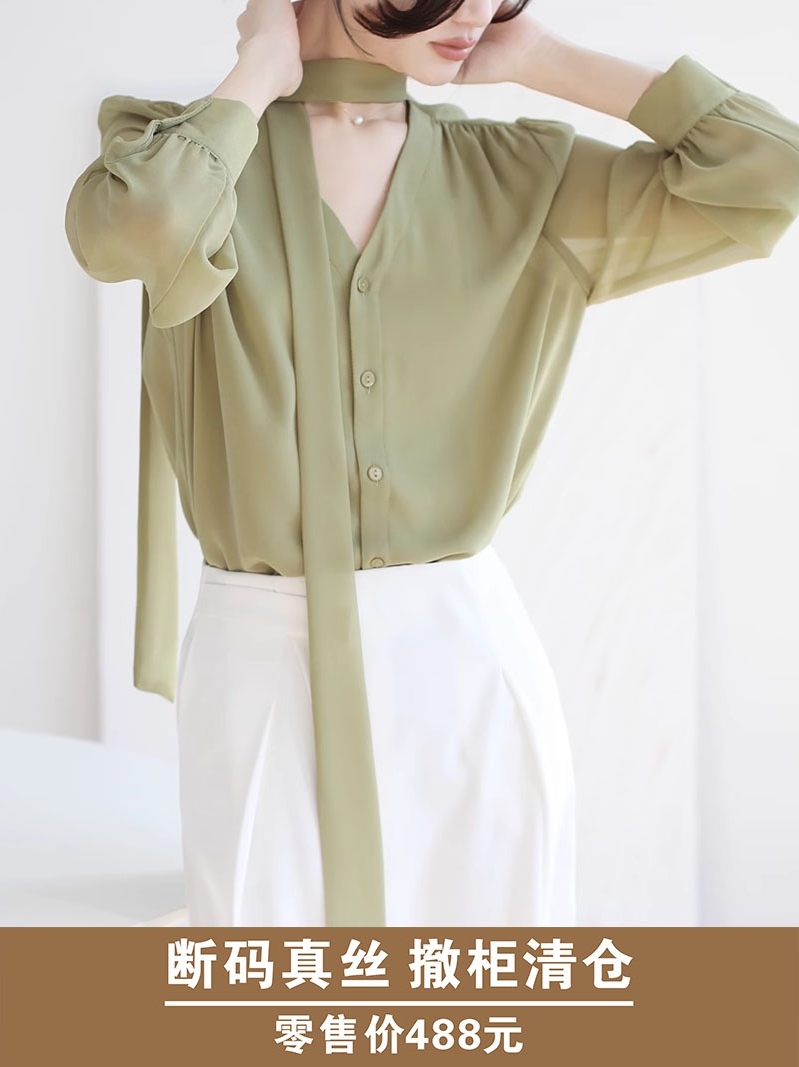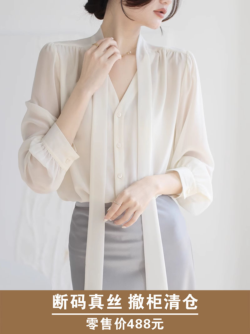 여성을위한 프랑스 스타일 실크 긴팔 셔츠 가을 새로운 우아한 패션 나비 리본 뽕나무 실크 탑스토어 가기
