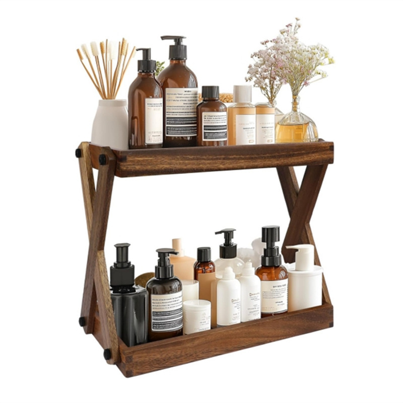 나무 주방 조미료 랙 더블 레이어 유럽 스타일의 욕실 조리대 세면 용품 보관 랙 단단한 나무 티 룸 티백 랙