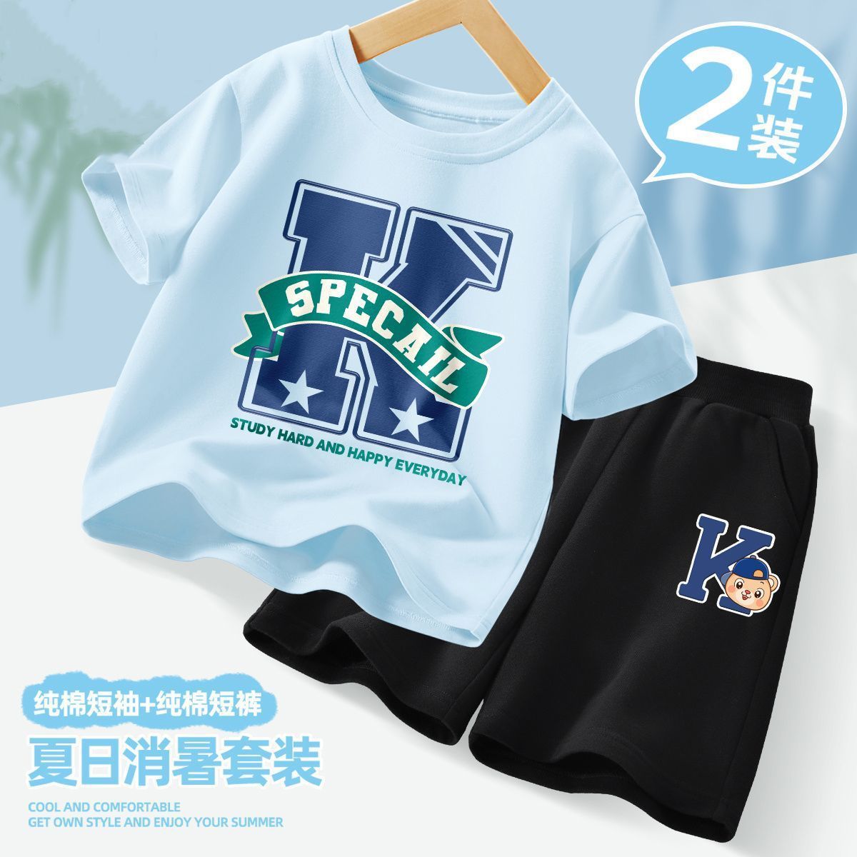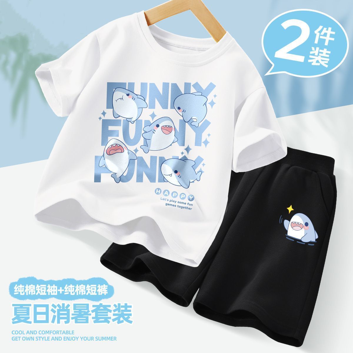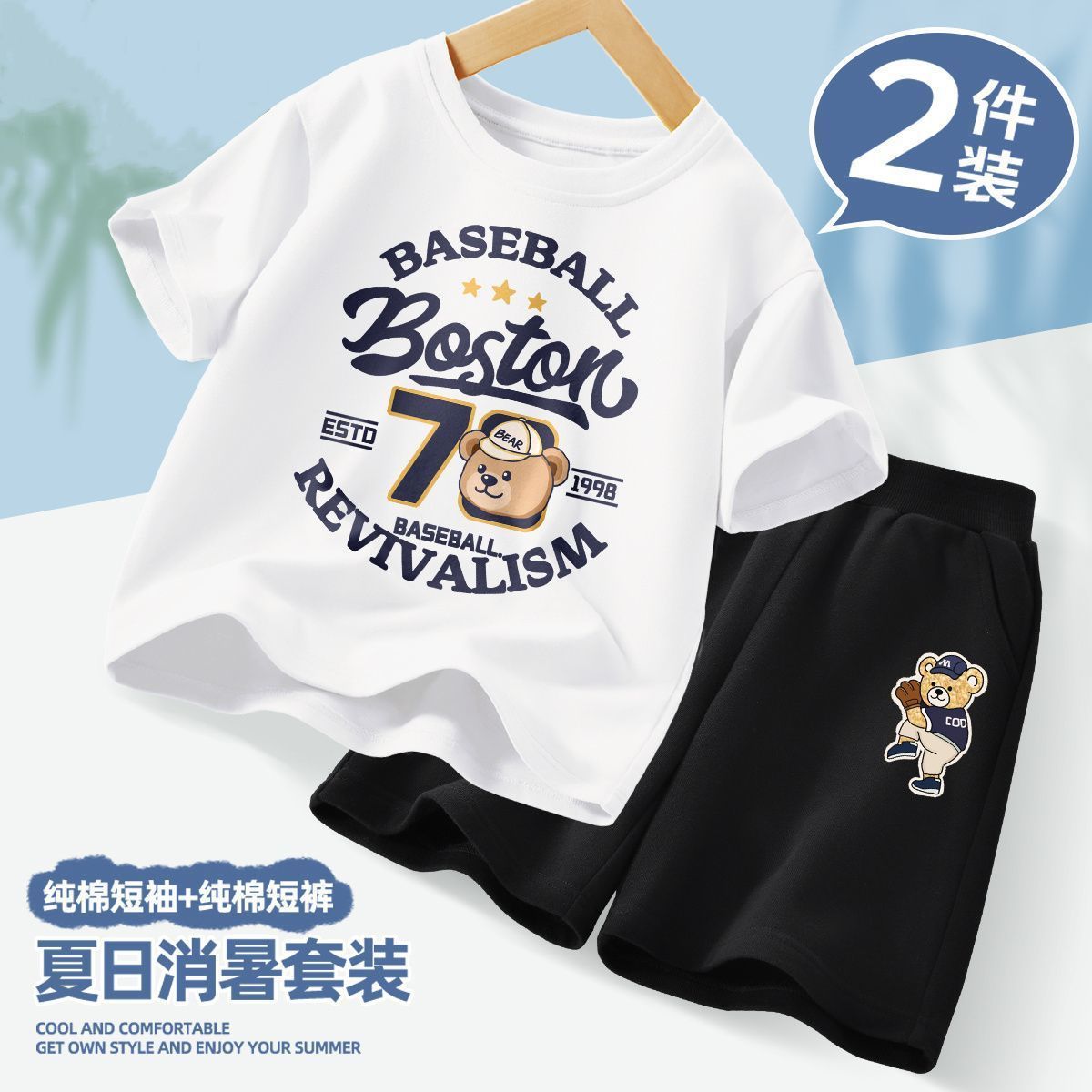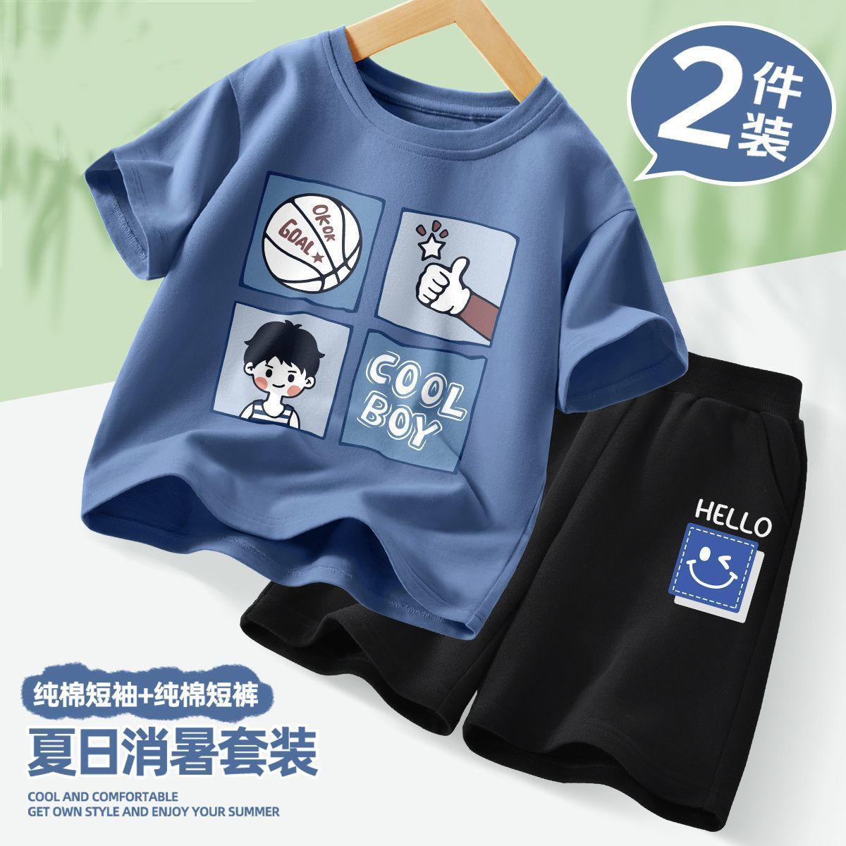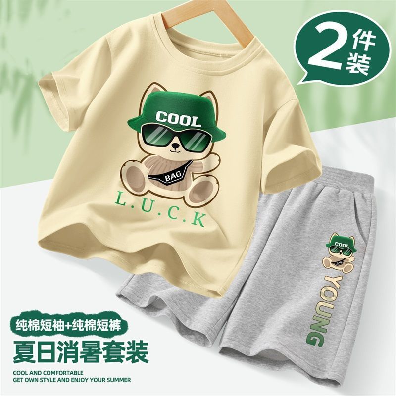 아동복 소년 여름 스포츠 통기성 의류 투피스 세트 2025 새로운 아동복 소년 여름 의류 트렌드스토어 가기