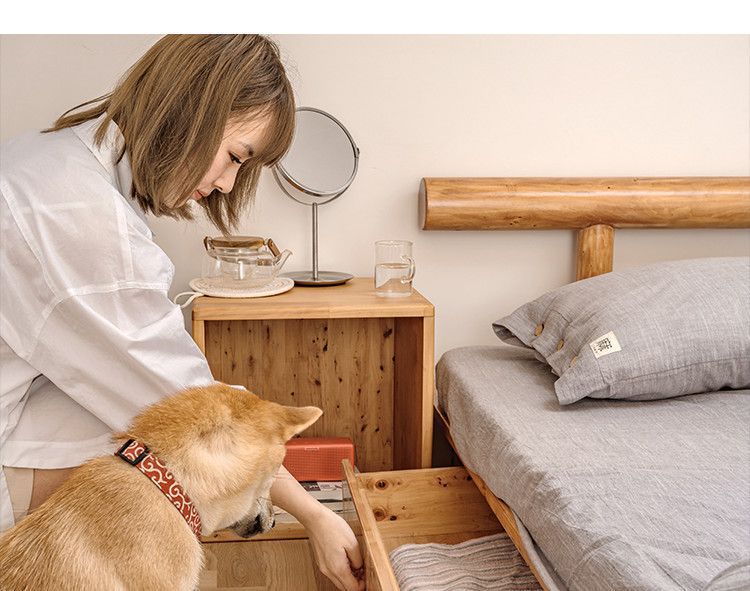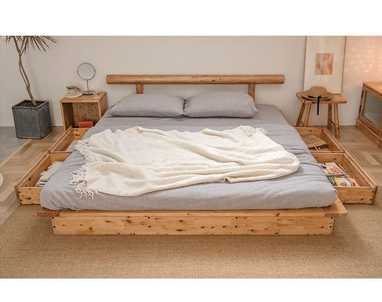 원목 다다미 플로어 침대, 통나무 로프트 침대, 더블 침대, 일본식 플랫폼 침대, 낮은 침대, 심플한 사이프러스 가구스토어 가기