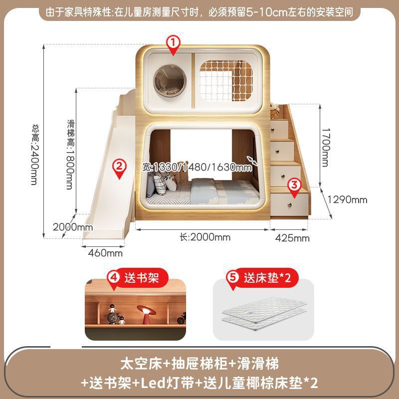 • C 스페이스 침대 + 미끄럼틀 + LED 조명 + 걸이사다리