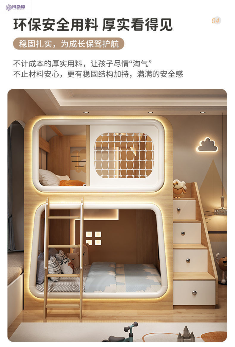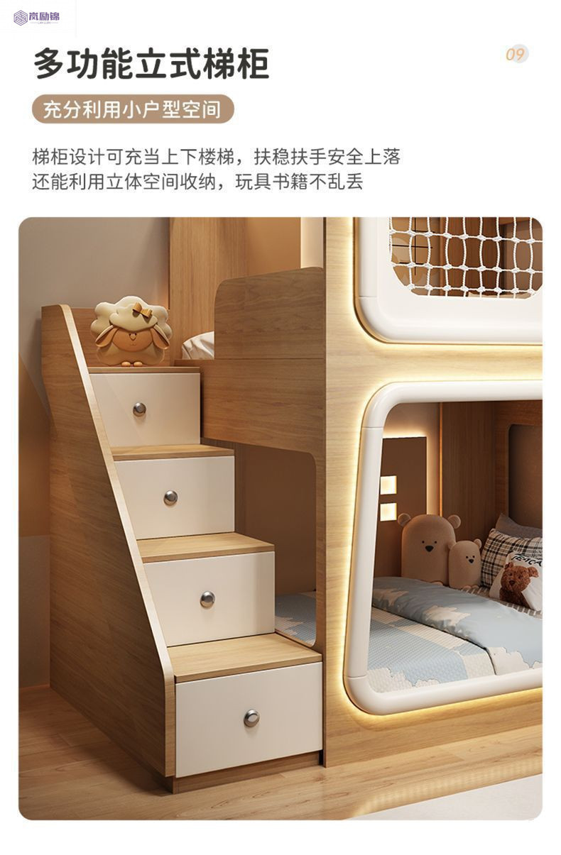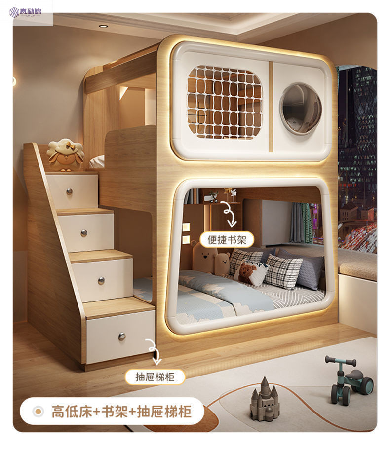 어린이 침대 우주 캡슐 난간 침대 작은 아파트 침대 크리 에이 티브 이층 침대 자매 높낮이 이층 침대 S