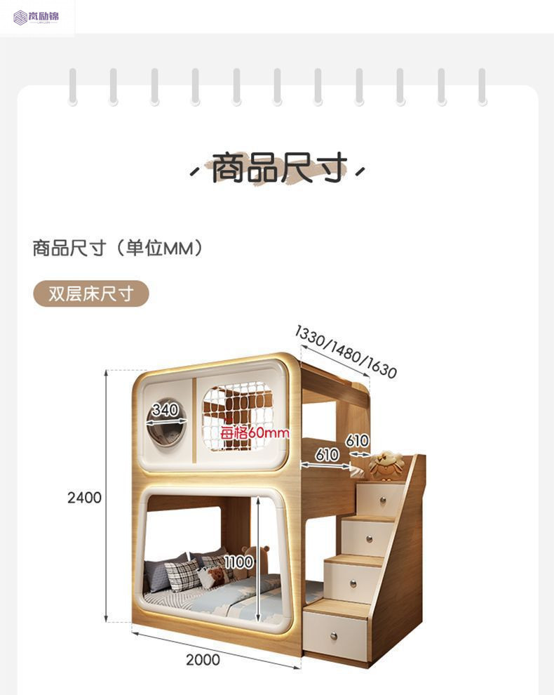 • B 공간 침대 + 사다리 캐비닛 + LED 조명