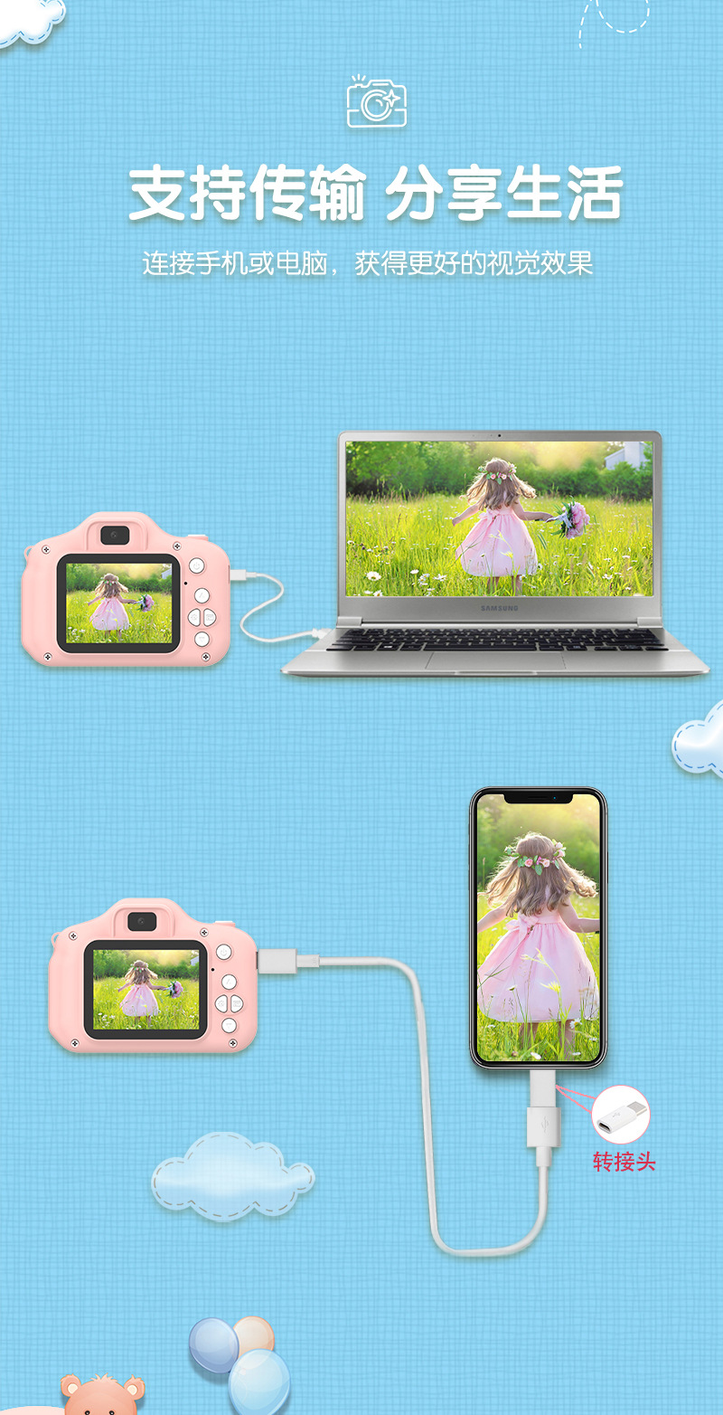 맞춤형 새로운 만화 어린이 카메라는 고화질 듀얼 카메라 미니 SLR 디지털 카메라 휴일 공장 녹화 가능스토어 가기