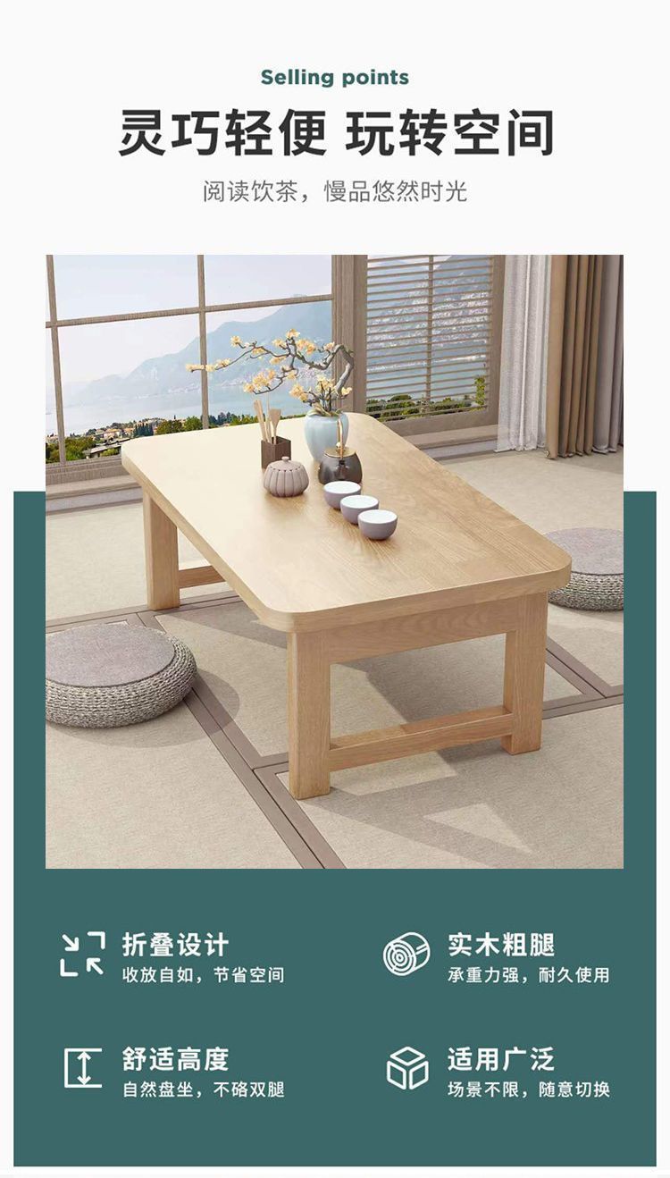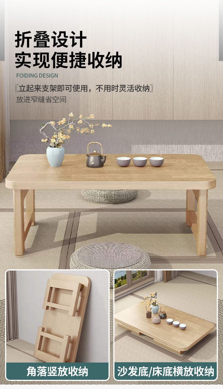 접이식 테이블 가정용 단단한 나무 다다미 작은 커피 테이블 베드 창 테이블 침대 학습 테이블 컴퓨터 낮은 테이블 단단한 나무스토어 가기