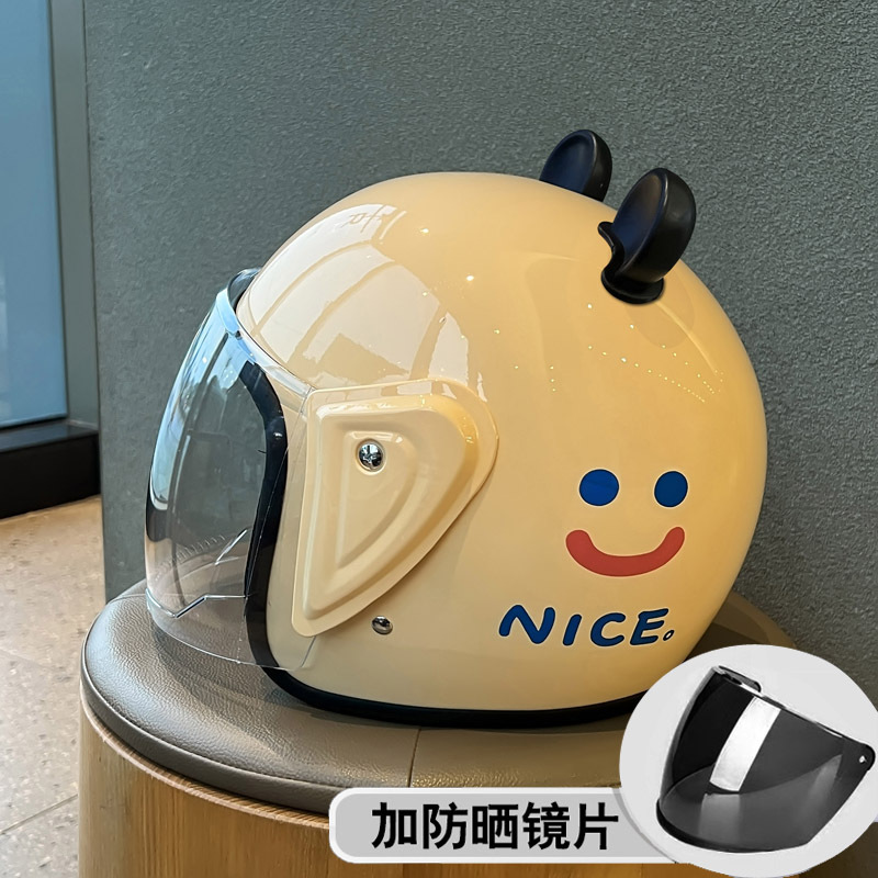 남성과 여성을 위한 겨울 3C 인증 전기 자동차 헬멧, 사계절 따뜻한 배터리 오토바이 귀 웃는 귀여운 안전 헬멧