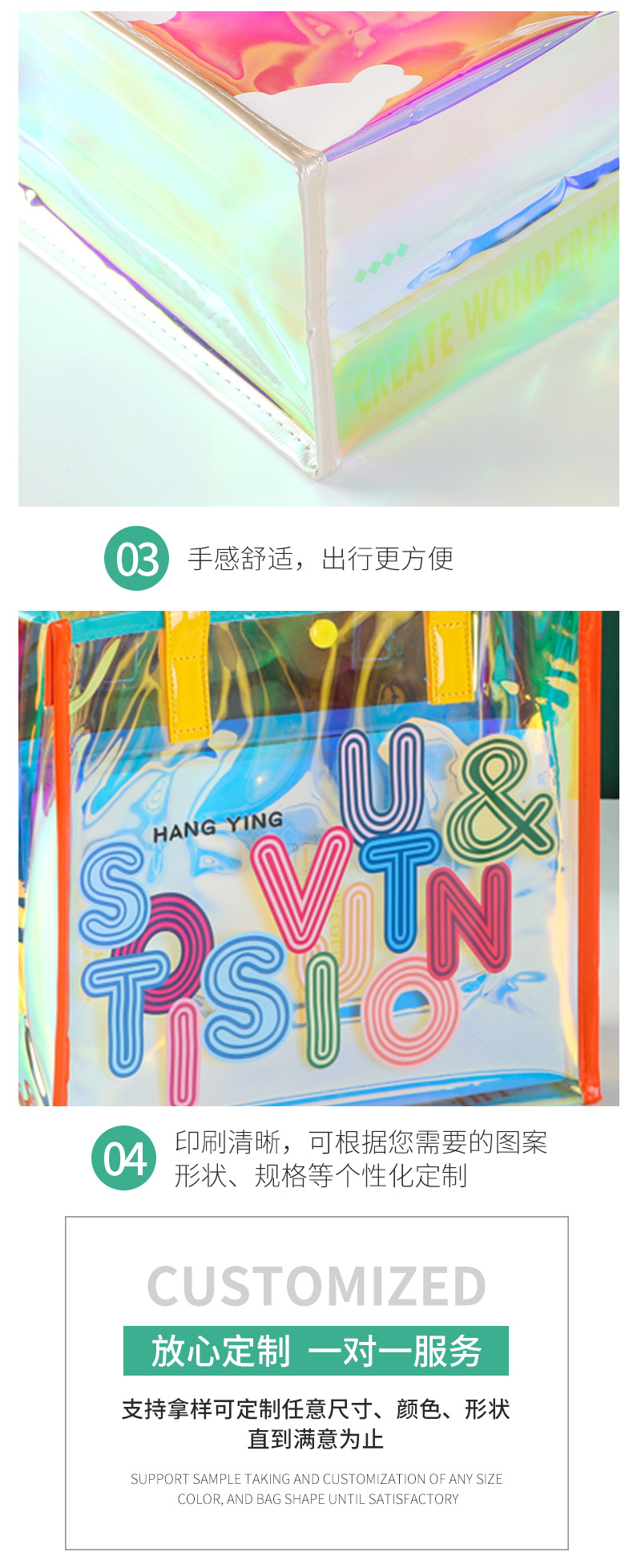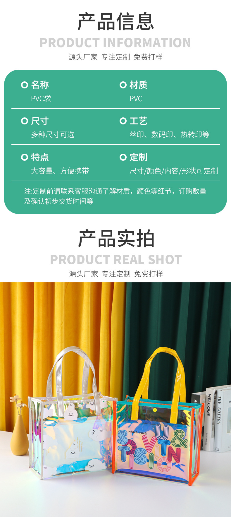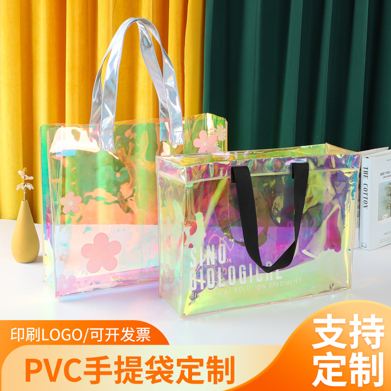 맞춤형 PVC 레이저 가방, 고급 투명 선물 가방, 중추절 월병 핸드백, 전시 레이저 젤리 가방스토어 가기