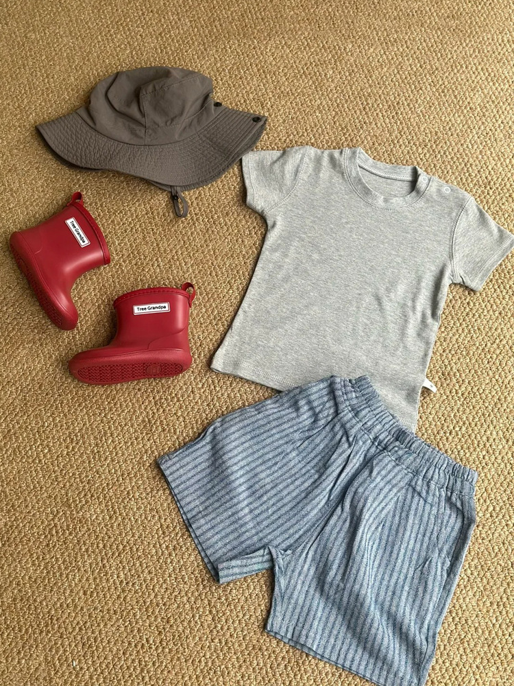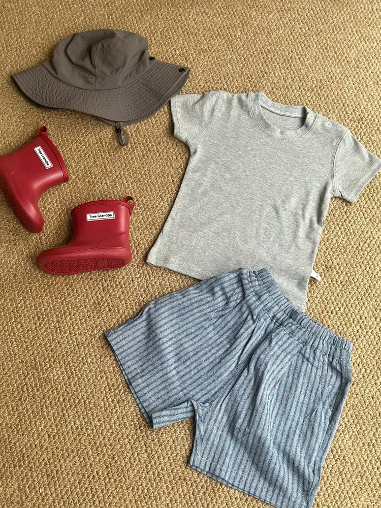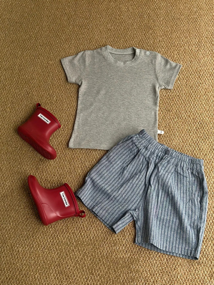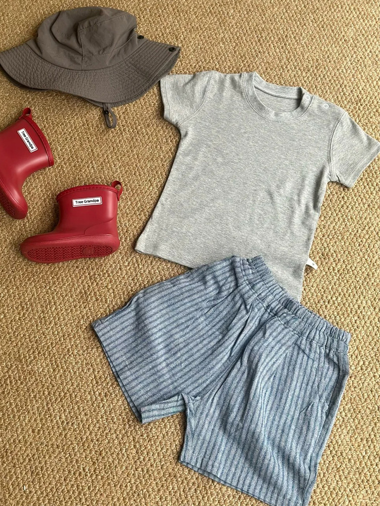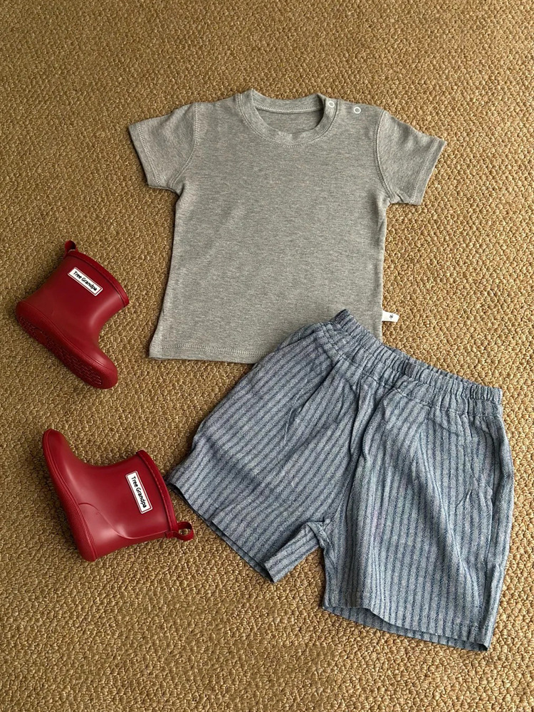 면과 린넨 모조 데님 통기성 아동용 여름 반바지 얇고 세련된 남성과 여성의 세로 줄무늬 느슨한 5점 0006A040스토어 가기