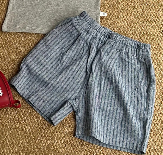 면과 린넨 모조 데님 통기성 아동용 여름 반바지 얇고 세련된 남성과 여성의 세로 줄무늬 느슨한 5점 0006A040