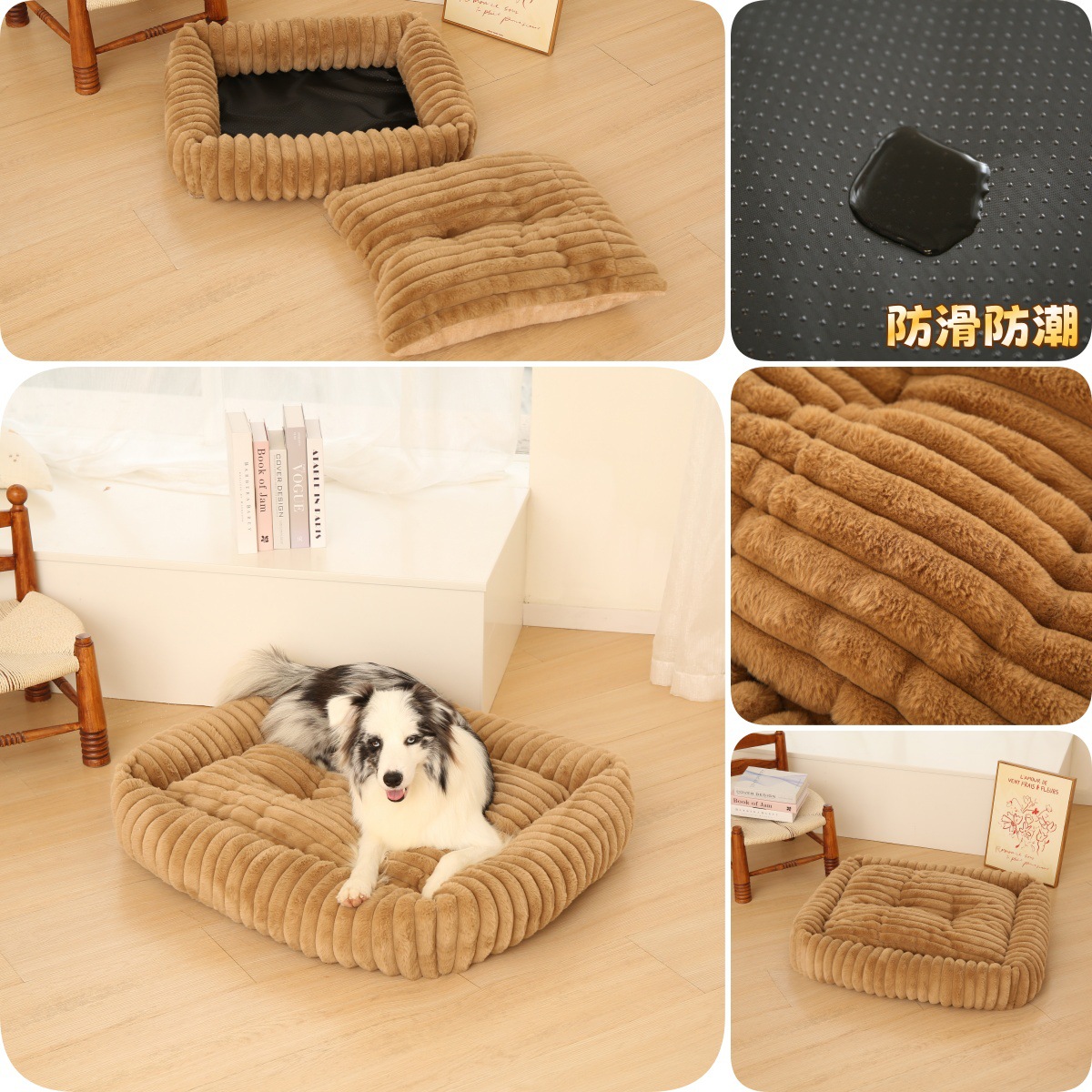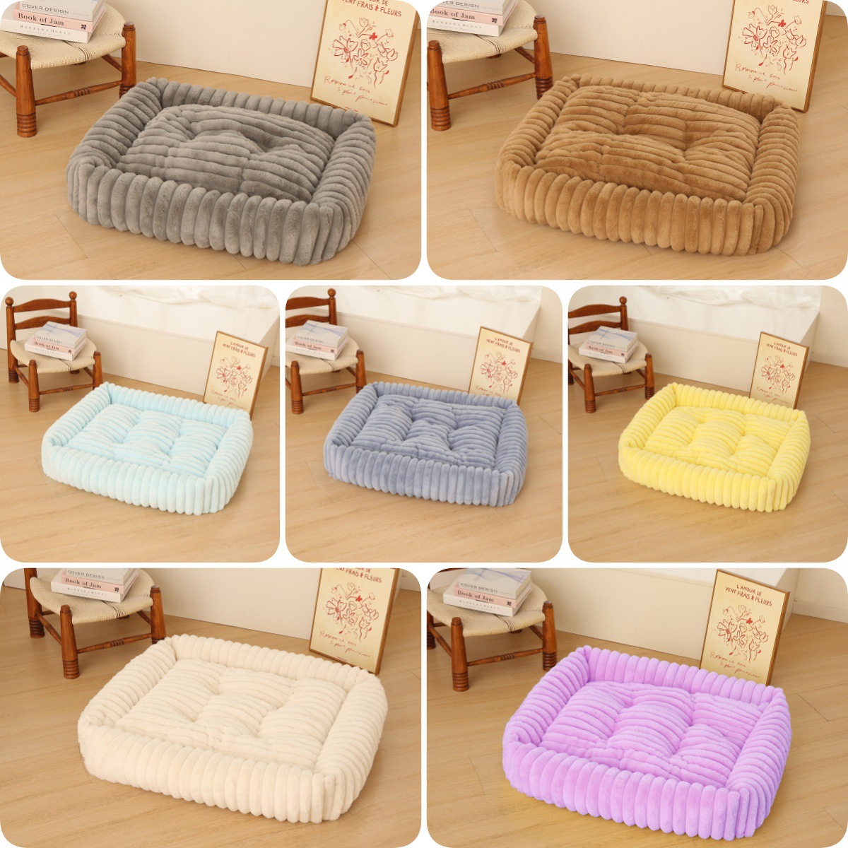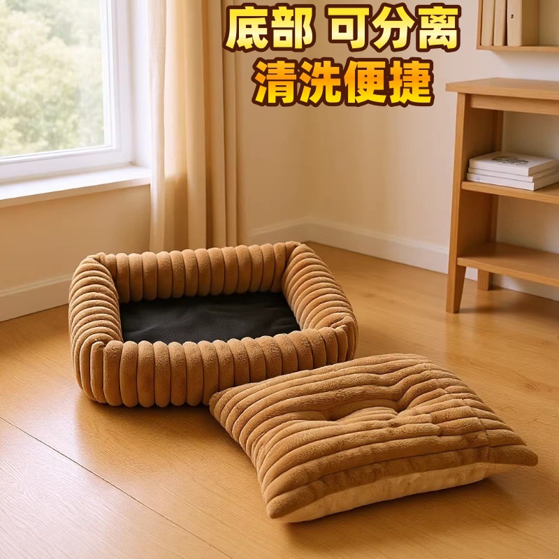 강아지 집, 고양이 집, 편안하고 부드러운 강아지 매트, 직사각형 애완동물 집, 신제품 줄무늬 강아지 침대, 공장 직판.스토어 가기