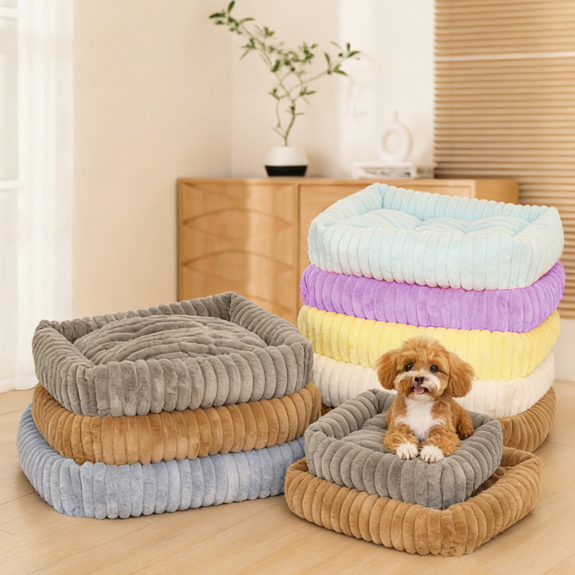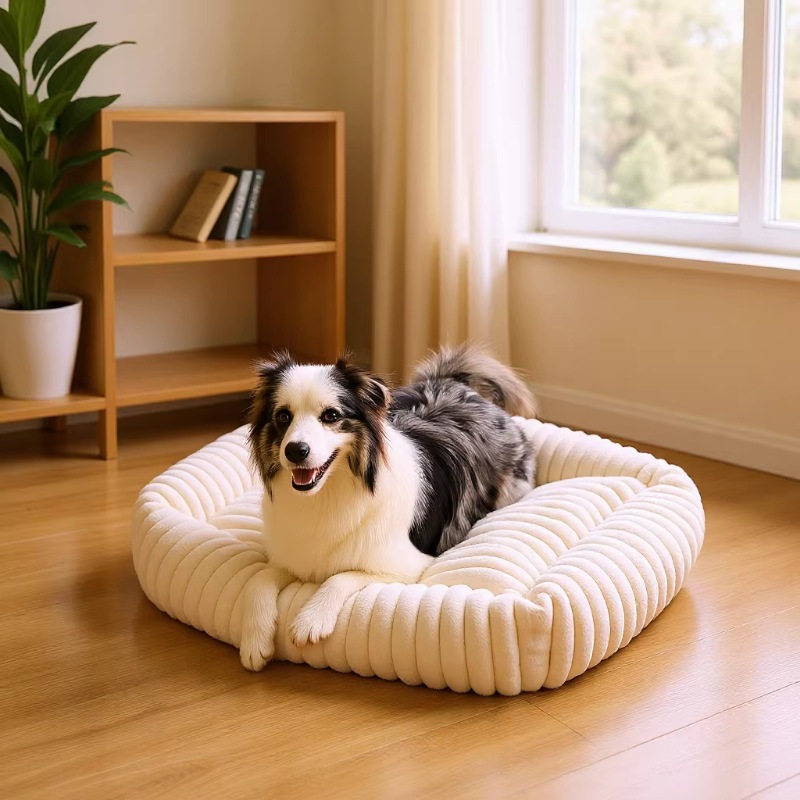 강아지 집, 고양이 집, 편안하고 부드러운 강아지 매트, 직사각형 애완동물 집, 신제품 줄무늬 강아지 침대, 공장 직판.